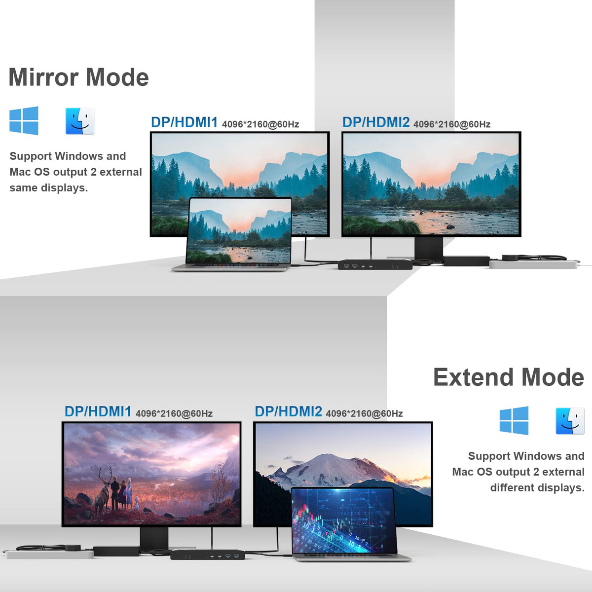 Wavlink Displaylink Laptop Docking Station Dual Monitors 5K/4K@60Hz, 100W Charging Thunderbolt 4/3, Usb C/A M1 M2 Mac, Windows, Chrome, Ubuntu 2Hdmi, 2Dp, 6 Usb Ports, 130W Power, Lan, Audio