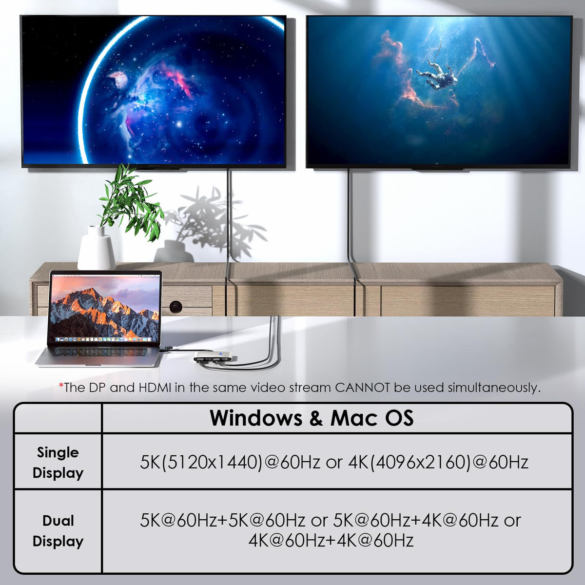 Wavlink Usb C And Usb 3.0 To Dual 4K Displayport & Hdmi Adapter, Displaylink Hdmi Splitter Extended Display For Dual Monitor 4K@60Hz, Hdmi/Dp Splitter Compatible With Mac M1/M2/M3, Hp, Dell, Lenovo