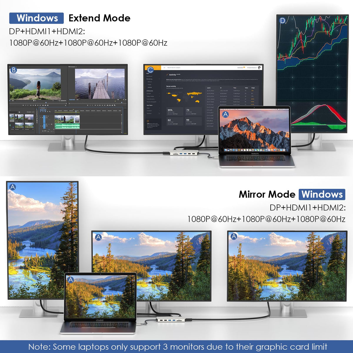 Wavlink Usb C Docking Station Dual Monitor, Usb C Hub Laptop Triple Display, Usb C To 2 Hdmi,Displayport, Pd Charging,Ethernet,5 Usb,Sd/Tf Card Reader,Audio For Macbook, Dell, Hp, Lenovo, Surface