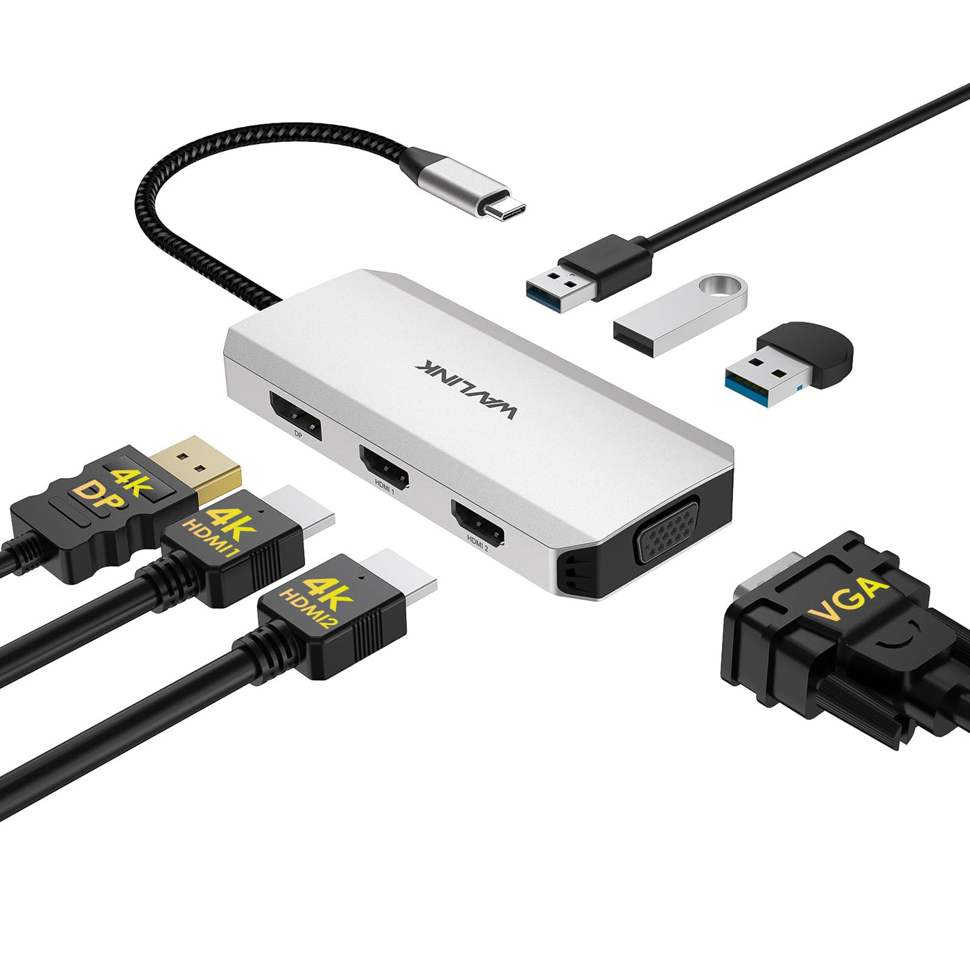 Wavlink Usb C Docking Station For Macbook Dell Xps 13/15, Lenovo Yoga, Hp Laptops, Usb C To Dual Hdmi Monitors For Windows, Usb C Hub Adapter With Dual Hdmi, Displayport, Vga, 3 Usb 2.0 Ports, Silver