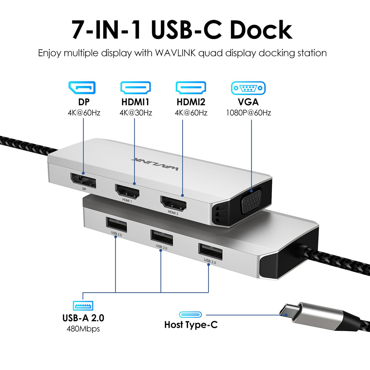 Wavlink 7-In-1 Usb C Quad Display Docking Station For Hp/Dell/Lenovo/Mac/Surface Laptops Unlock The Full Potential Of Your Workspace With The Wavlink 7-In-1 Usb C Quad Display Docking Station. This Multiport Adapter Seamlessly Expands Your Laptop'S Connectivity, Allowing You To Connect To Multiple Displays And A Variety Of Usb A Peripherals. With Wide Compatibility And No External Driver Required, It'S The Perfect Solution For Enhancing Your Productivity. Compatible With Windows 11/10/8.1/8/7, Mac Os 10.8 Or Later, Chrome Os, Linux, Ipad Os, Harmony Os, Android, Making It The Ultimate Companion For Most Usb C Devices.