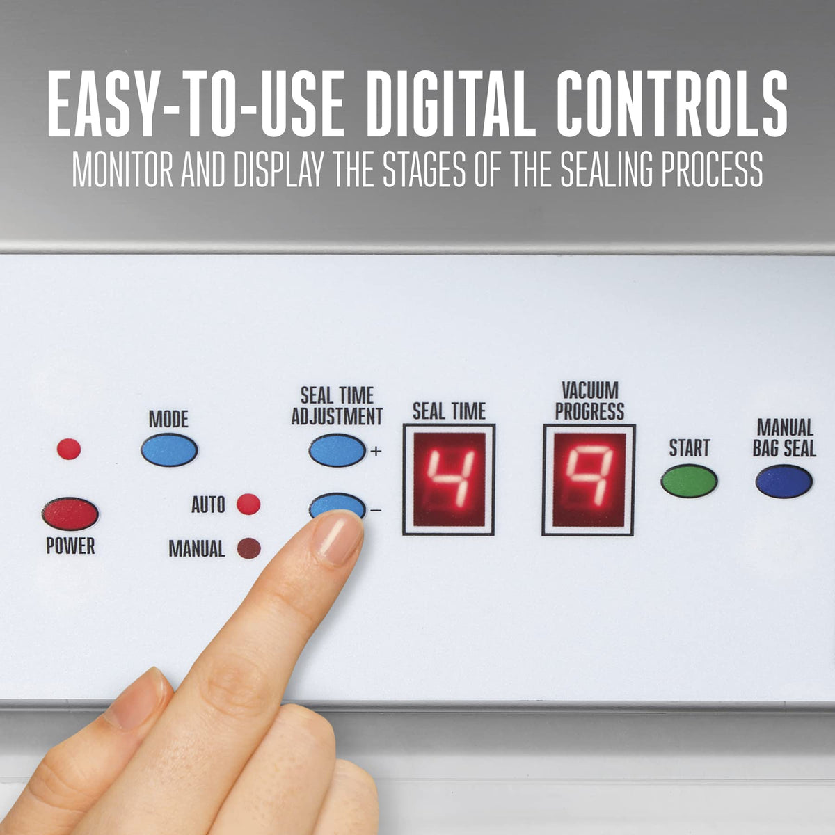 Weston Products Vacsealer Pro 3000 Stainless Steel 65-0401-Wcapable Of 28 Inch Of Vacuum Seal That Will Keep Food Fresh 5 To 6 Times Longer Than Traditional Storage Methods. Capable Of Sealing Bags Up To 15 Inch Wide, This Sealer Is The Largest In The Industry, Making Any Big Job A Breeze!. Using The Finest Materials And Industrial Construction, This Machine Is Designed For A Lifetime Of Use And Durability. Features:- 935 Watts (120 Volt, 60 Hz).- Extra Wide Heat Sealing Bar For Sealing Bags Up To 15'. Wide- Double Piston Vacuum-Pump Delivers Up To 28'. Hg Vacuum Strength- Detachable Power Cord And Convenient Storage Compartment- Led Lights Monitor The Stages Of The Sealing Process- Automatic Mode With Simple One-Touch Operation And Manual Seal Mode Allows Control Of The Amount Of Vacuum Pressure For Sealing Soft Foods Or Delicate Objects- Transparent Acrylic Vacuum Lid For Perfect Bag Alignment While Sealing- Stainless Steel Construction (Pro-2300 And Pro-3000 Only).- Pro-3000 Has An Easy-To-Use, Digital Control Panel.