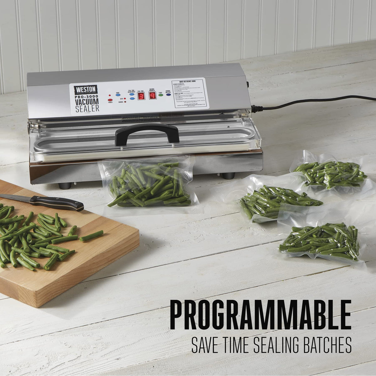 Weston Brands Vacuum Sealer Machine For Food Preservation & Sous Vide, Extra Wide Bar For Sealing Bags Up To 15' Wide, 935 Watts, Commercial Grade Pro 3000, Programmable Led Controls, Stainless Steel
