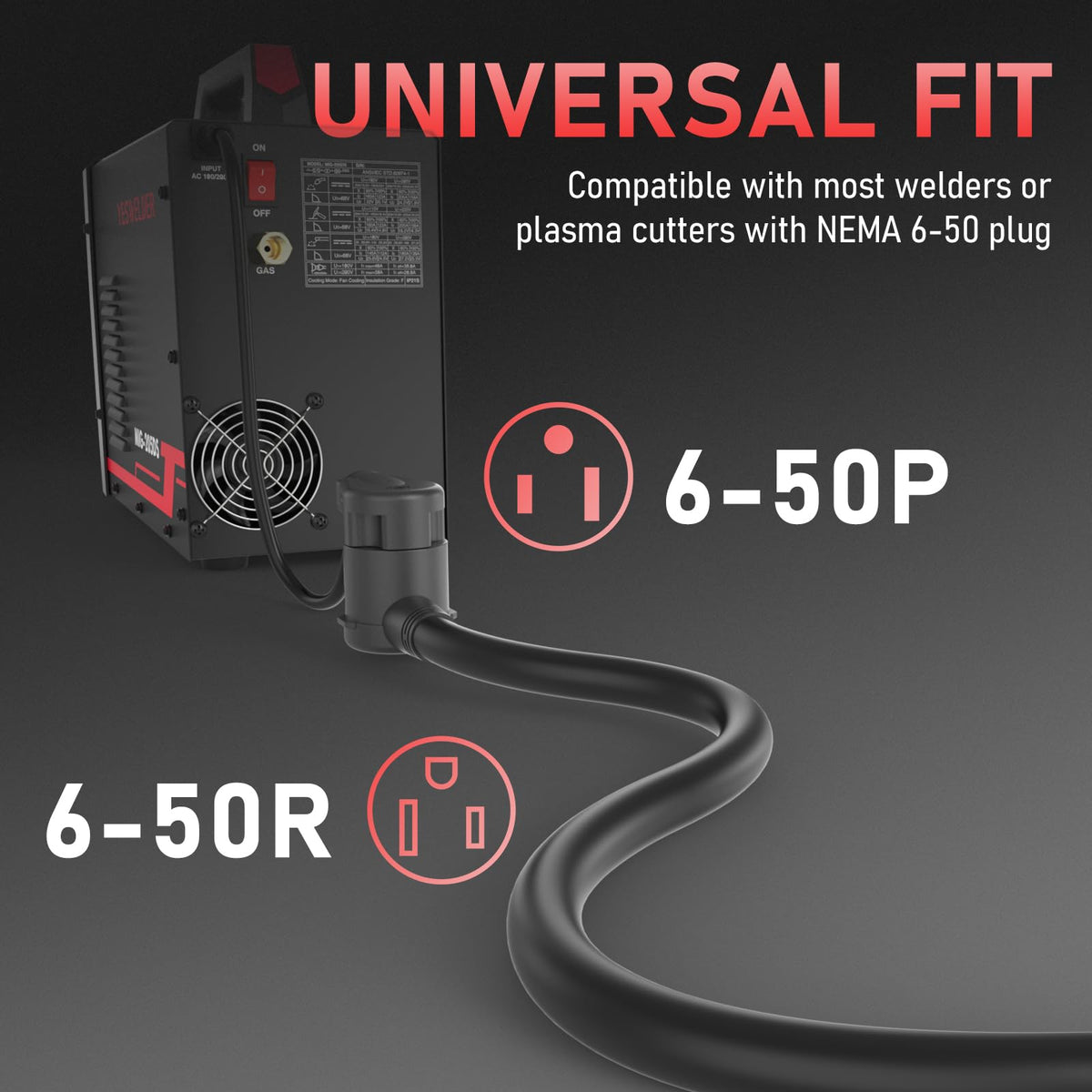 ?20Ft Cord Length?-Safe Extend Your Power Up To 20 Ft Away, Which May Be Combined With Your Existing Welder Cords And Adapters, Protecting You And Others From Hazardous Welder Spark ?8 Awg & 3 Conductor?-50A 250V Welding Extension Cord. It Is Flexible And Durable, Can Be Used Indoor Or Outdoor. 10Awg(Wire Gauge), 3 Conductors, 20Ft Length And Equipped With Nema 6-50P Plug ?Heavy Duty Design?-Heavy Duty Extension Cord Corrosion Resistant Design. Perfect For Indoor Use. Resist To Splash Water. Apply Stw Jacket And Good Material For Longer Service Time And Heavy-Duty Performance. ?Flexible In Temperature -Highly Flexible Annealed Bare Copper Conductors, Insulated With An Stw Water-Resistant Jacket.Perfect For Indoor And Outdoor Use. Resist To Rain Or Splash Water Operating Temperatures Range From -40?C To +90?C (-40?F To 194?F) ?Wide Application?-It Will Fit Most Welders Including: Miller Millermatic Welders, Lincoln Power Mig Series Welders, Hobart Handler, Ironman And Betamig Welders, Century Welders Etc