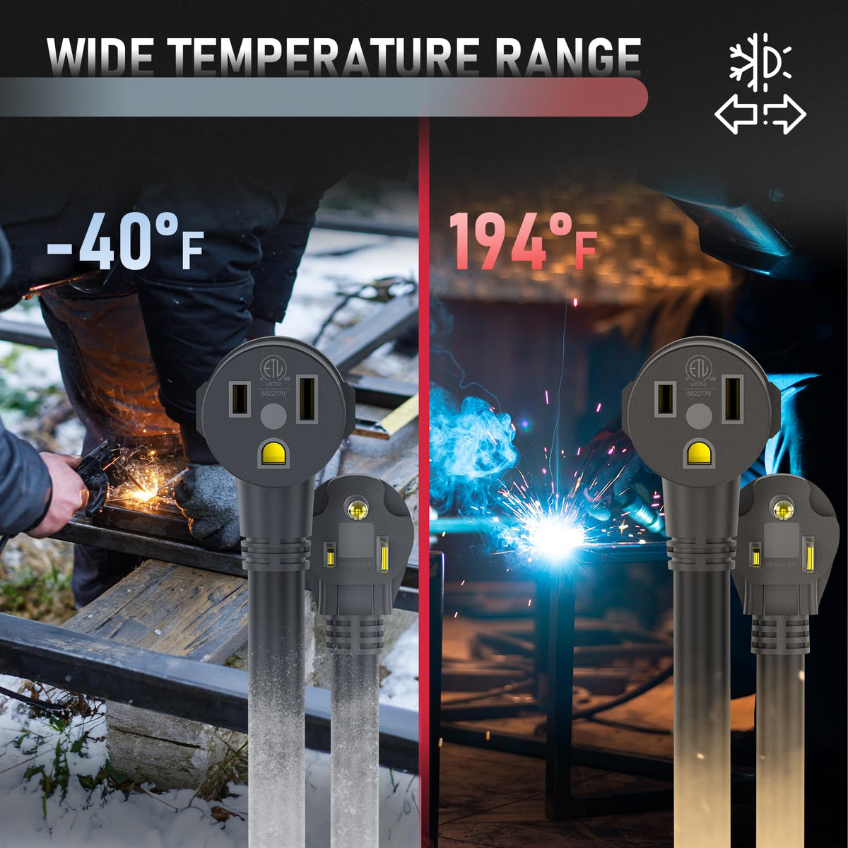 Q: What are the operating temperature ranges for this extension cord?A: The YESWELDER extension cord operates effectively within a temperature range of -40°C to +90°C (-40°F to 194°F), ensuring flexibility in various environments.