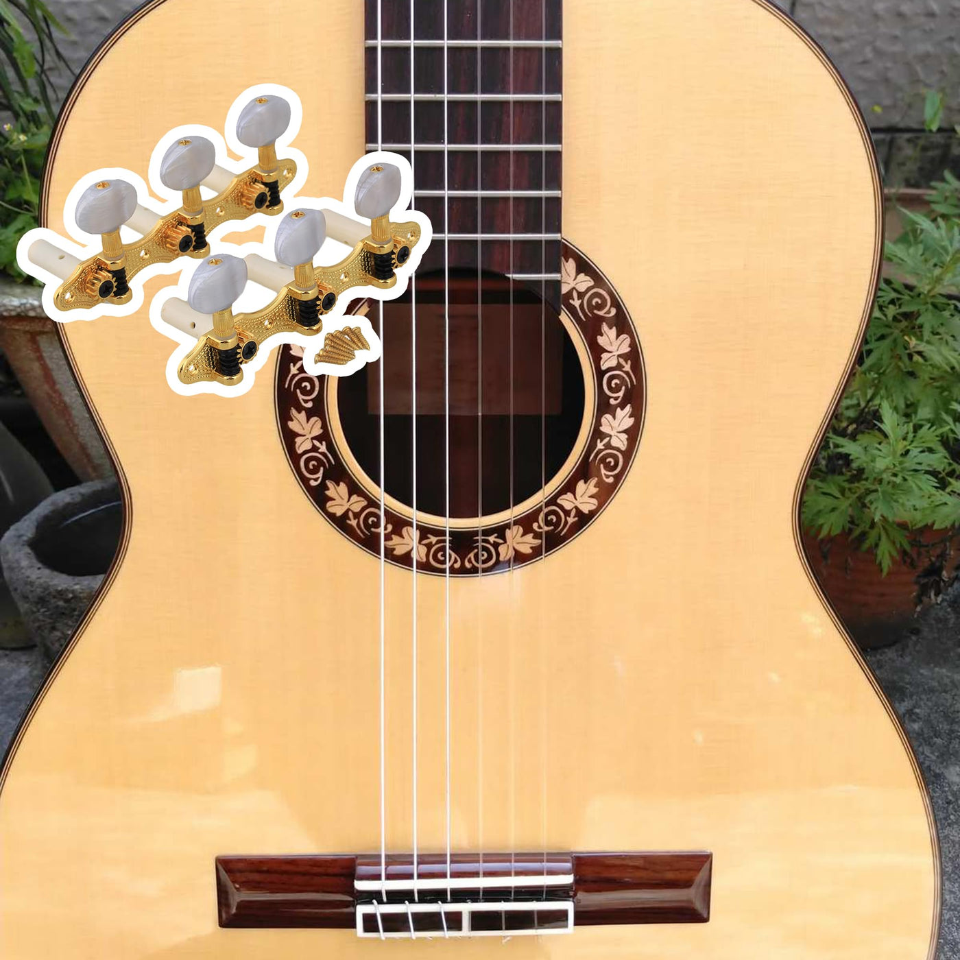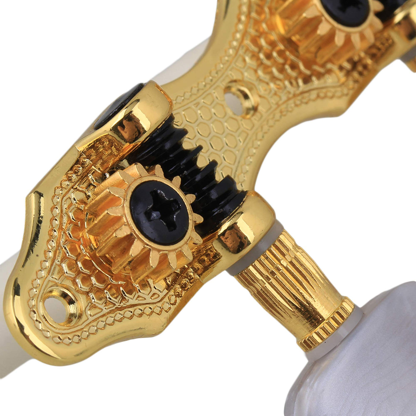 Notes: There Is A Little Color Difference Between The Picture And Object. 1.This Product Is Suitable For Guitar, Classical Style, Can Better Decorate Your Guitar. 2.This Product Is Made Of Metal And White Pearled Buttons, Has A Long Service Life.3. You Will Get 2 Pieces Tuning Keys Pegs(One Is For Left, The Other One Is For Right),And 8 Pieces Screws, To Help You Simple To Install. 4.The Shaft Center To The Other Shaft Center Is 3.5Cm.Size: Overall Length: 109.3Mm/4.3'' Crown: 44X39.4Mm/1.73X1.55'' (Hxw) Knob Spacing: 25Mm/0.98'' Hole Distance: 1.3'' Color:Gold Material: Metal Package Included: 2 X Guitar Tuning Pegs8 X Screws
