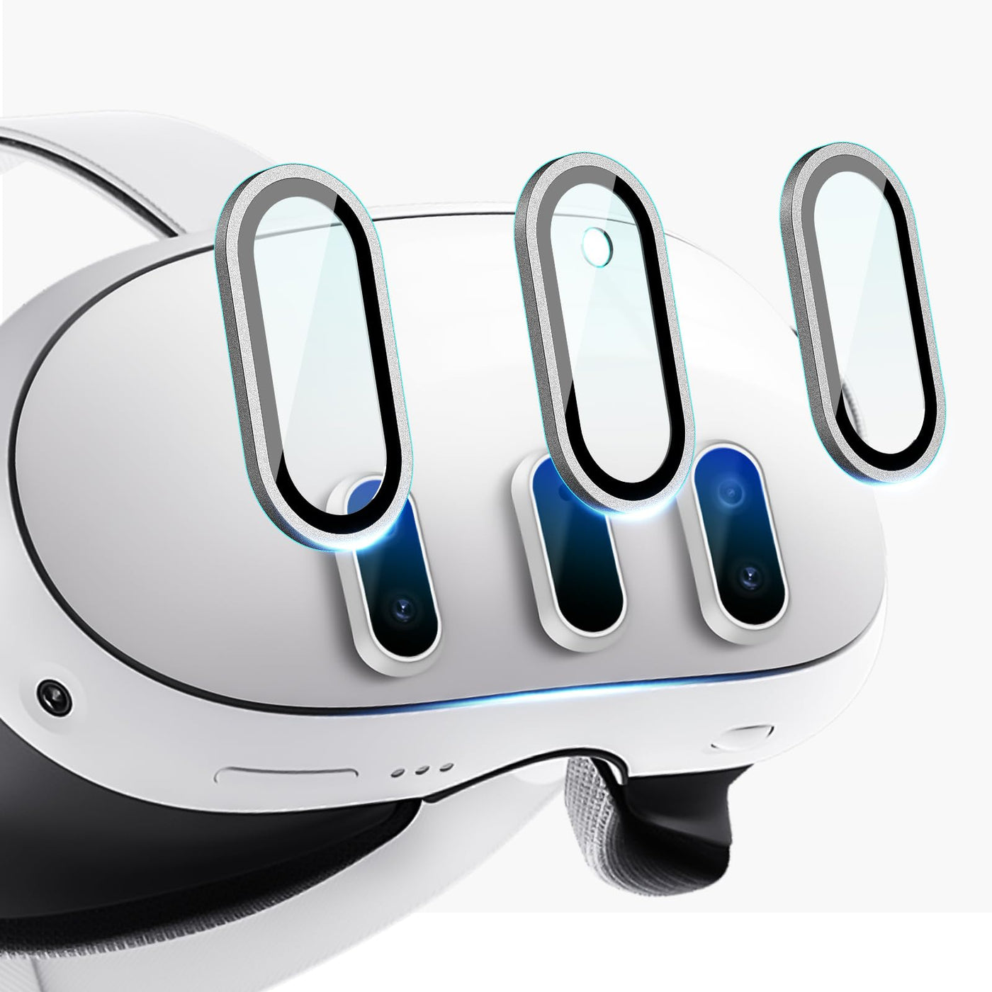 Deholto Camera Lens Protector for Oculus Meta Quest 3 Accessories, Thin 9H Tempered Glass, Alloy Frame, Anti-Scratch, Camera Screen Protector Cover, Case Friendly, High Definition Lens Accessories, Silver
