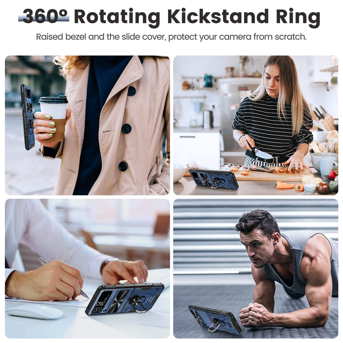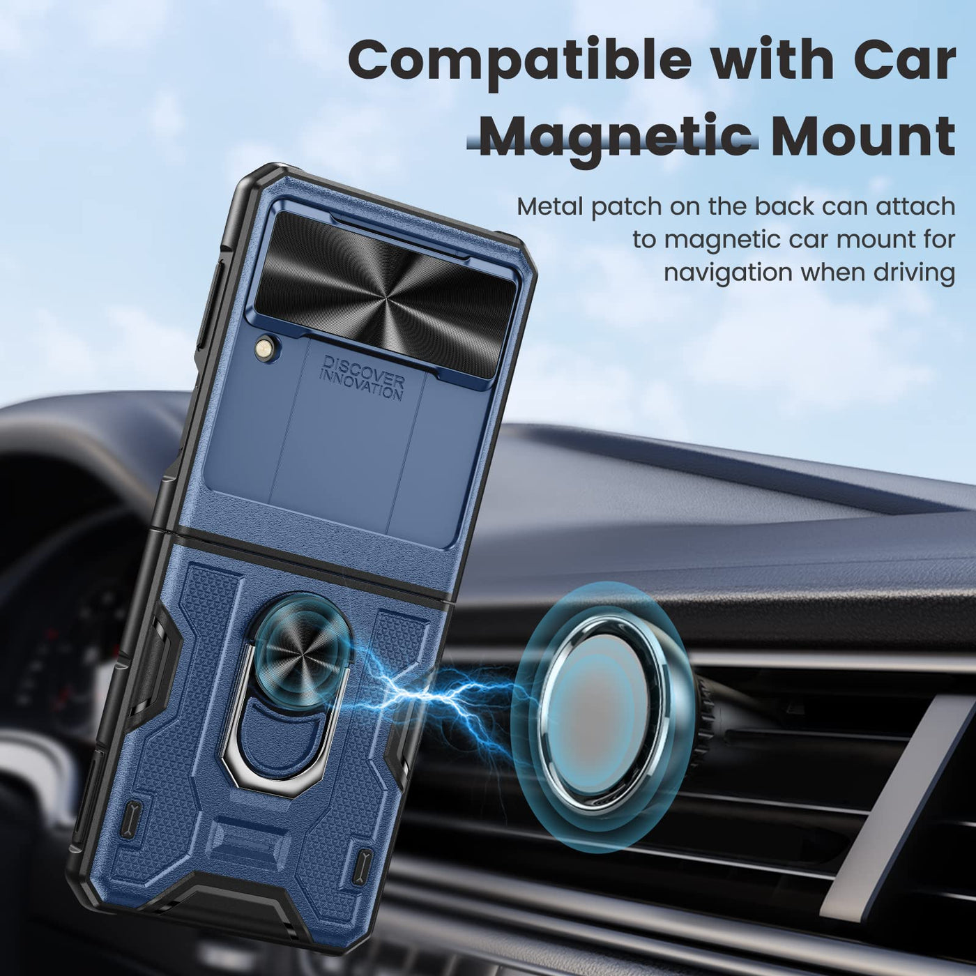 Z Flip 3 Case, Galaxy Z Flip 3 Case With Hinge Protection, Kickstand & Camera Cover Package Samsung Galaxy Flip 3 Case With Kickstand * 1Features: Compatible With Car Magnetic Mount: Z Flip 3 Case With Kickstand Ring Magnetic Cover Will Compatible With Magnetic Car Mounts, Metal Patch On The Back Can Attach To Magnetic Car Mount To Improve Your Driving Experience Not Includes The Magnetic Car Mount Holder) Innovative Hinge Protectionsamsung Galaxy Z Flip 3 Case Hinge Protection Design, Which Built-In Sliding Hinge Protection Will Slide Smoothly While Protecting The Phone Hinge Surface With Triangle Texture, Offer Great Hand Grip And Anti Slip Slide Camera Cover: Delicate Camera Slide Cover, 02 Mm Raised Bezel Can Protect Your Galaxy Flip 3 Phone Lens From Damage Slight Lock In Each Side, Not Slide Randomly Slide Cover Protects Camera From Scratch And Protects Your Privacy Portable Kickstand Feature:This Samsung Z Flip 3 Case With Built-In 360A Flip-Able Kickstand Can Firmly Hold Your Phone For Horizontal Viewing Flip 3 Case With Stand Fits Comfortably Over Your Finger, Will Provide Security When Holding The Phone And Hands-Free Viewing Fit Body,Surround Protection: Samsung Galaxy Z Flip 3 Buttons,Activity And Flexible, Fits Like A Glove With Precise Cutouts Tips The Package Include: Z Flip 3 Case With Hinge Protection* 1