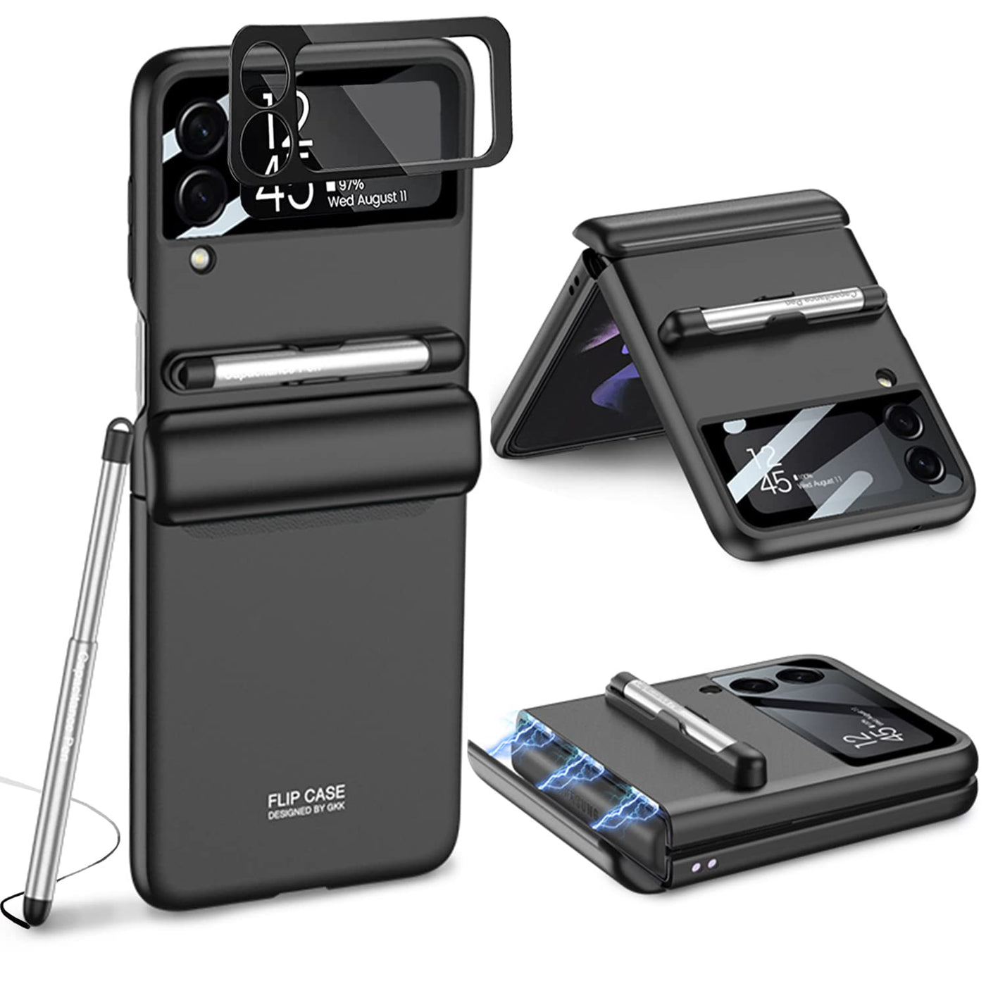 Cocoing For Samsung Galaxy Z Flip 4 Case,With Stylus Fashion Business Phone Case,With Hinge Protection Device And Camera Screen