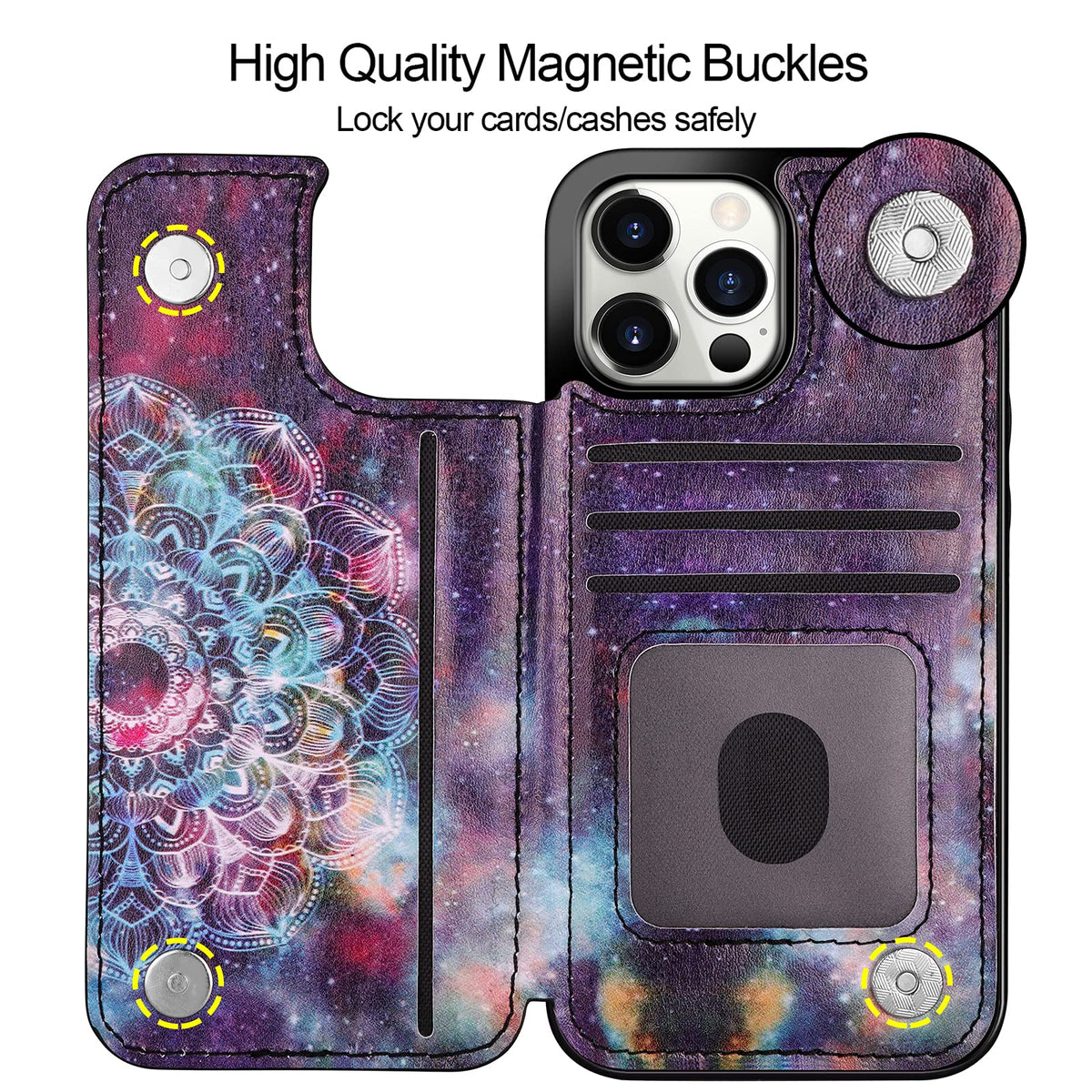 Q: What kind of closure does this wallet case use to keep contents secure?A: The wallet case utilizes a steady magnetic closure to keep your cards and cash safe and secure, preventing them from slipping out.