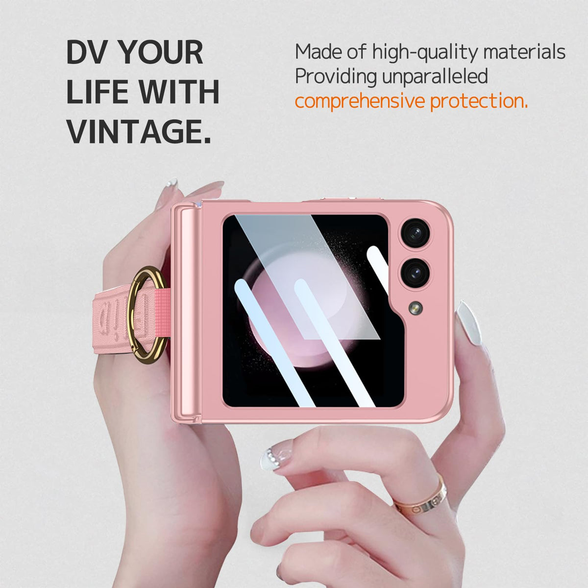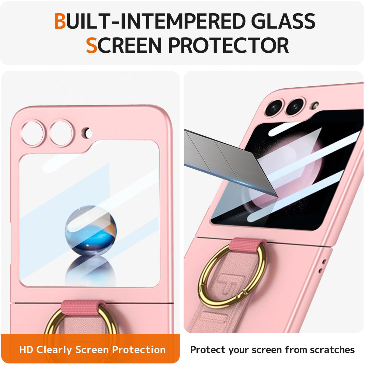 Ninki Cute Case For Samsung Galaxy Z Flip 6 Case With Screen Protector & Strap,Shockproof Thin Cover Ring Case For Samsung Z Flip 6 Phone Case With Wrist Strap,Slim Galaxy Z Flip 6 Case For Women Pink