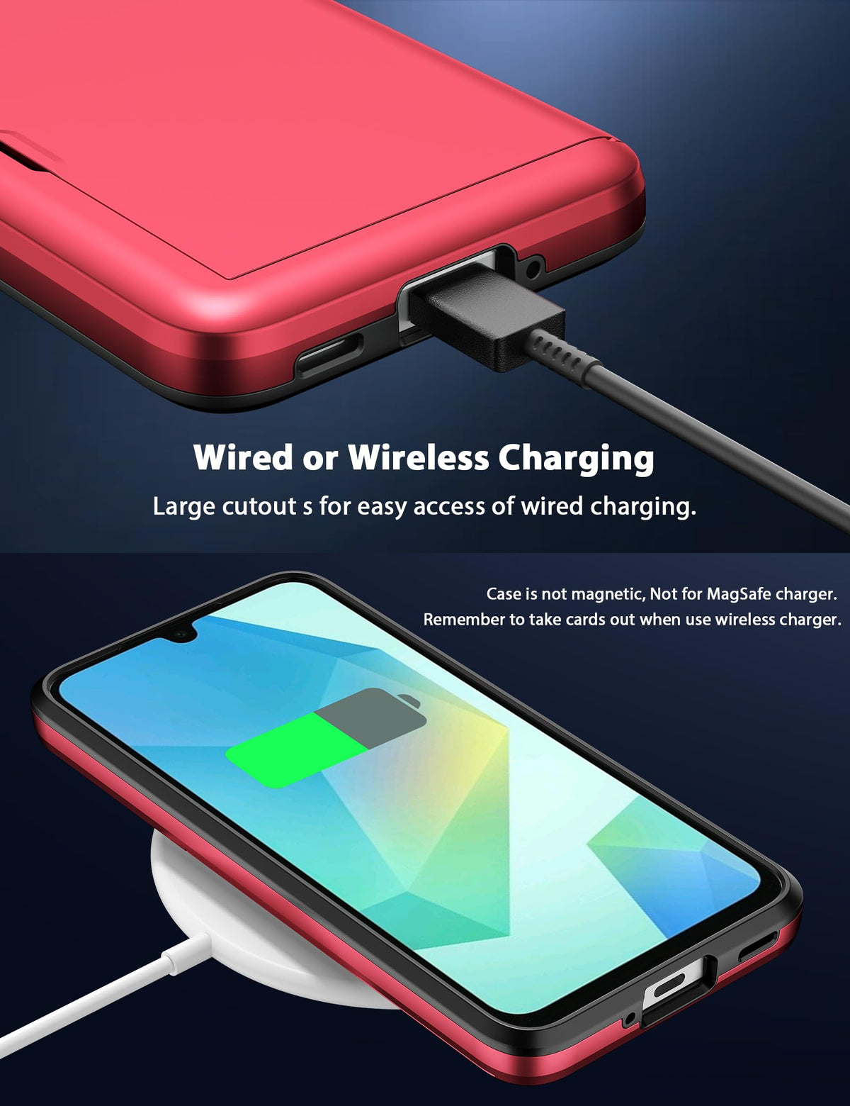 Topaux For Samsung A16 5G Wallet Case Galaxy A17 5G Wallet Case 2 Credit Card Holder Slide Cover Back Pocket Id Slot Raised Bezel Dual Layer Rugged Bumper Anti-Scratch Protective Hard Shell Red