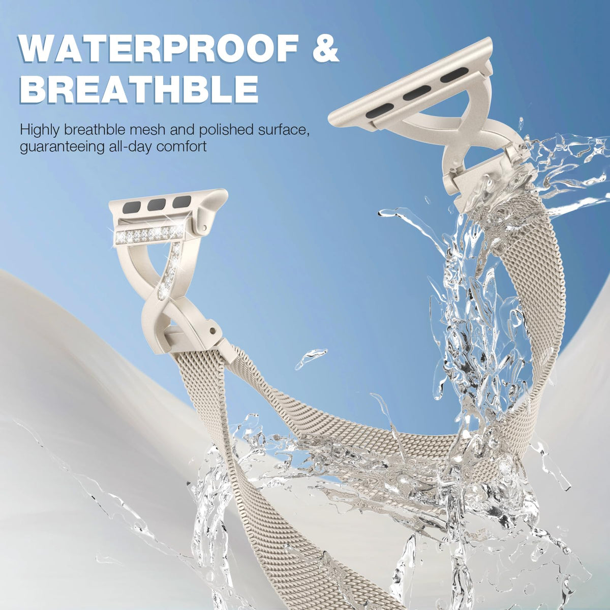 Brg Milanese Mesh Loop Boasts A Unique X-Shaped Metal Buckle With Bling Rhinestone, Blending Elegance And Uniqueness For Both Casual And Formal Occasions. This Refined, Professional Iwatch Band Adds Sophistication, Enabling Users To Seamlessly Personalize Their Watch To Match Their Daily Mood And Attire, Achieving A Distinctive Appearance It Is Available For Apple Watch Series 10 9 8 7 6 5 4 3 2 1, Se. You Need To Check The Size Of Your Watch Before Purchase, We Offer The Apple Watch Band 38Mm 40Mm 41Mm 42Mm 44Mm 45Mm 46Mm Size For Apple Watch. Made With A Breathable And Sweat-Proof Stainless Steel Material, This Band Is Designed To Provide Ultimate Comfort During Your Workouts Or Daily Activities. With Its Sleek And Elegant Thin Milanese Loop Design, It Adds A Touch Of Sophistication To Your Watch. Easy To Install And Adjust, This Band Fits Most Wrist Sizes, Making It Suitable For Women. Upgrade Your Watch And Experience Style And Comfort Like Never Before With Our Milanese Loop. It Will Neither Fade Nor Rust, Nor Bring Allergy Problems. We Carefully Design It Only To Decorate Your Wrist With Care. Also The Perfect Gift For Your Friends And Family.