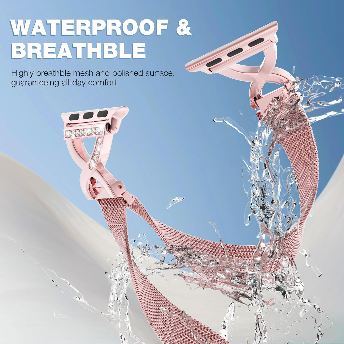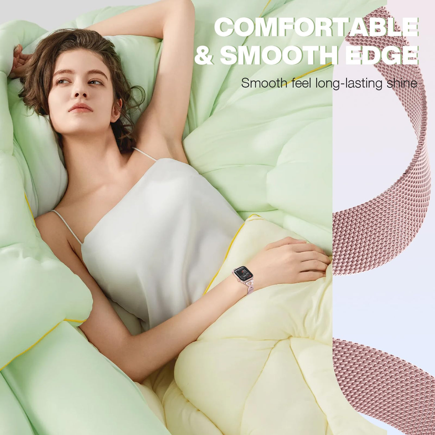 Brg Milanese Mesh Loop Boasts A Unique X-Shaped Metal Buckle With Bling Rhinestone, Blending Elegance And Uniqueness For Both Casual And Formal Occasions. This Refined, Professional Iwatch Band Adds Sophistication, Enabling Users To Seamlessly Personalize Their Watch To Match Their Daily Mood And Attire, Achieving A Distinctive Appearance It Is Available For Apple Watch Series 10 9 8 7 6 5 4 3 2 1, Se. You Need To Check The Size Of Your Watch Before Purchase, We Offer The Apple Watch Band 38Mm 40Mm 41Mm 42Mm 44Mm 45Mm 46Mm Size For Apple Watch. Made With A Breathable And Sweat-Proof Stainless Steel Material, This Band Is Designed To Provide Ultimate Comfort During Your Workouts Or Daily Activities. With Its Sleek And Elegant Thin Milanese Loop Design, It Adds A Touch Of Sophistication To Your Watch. Easy To Install And Adjust, This Band Fits Most Wrist Sizes, Making It Suitable For Women. Upgrade Your Watch And Experience Style And Comfort Like Never Before With Our Milanese Loop. It Will Neither Fade Nor Rust, Nor Bring Allergy Problems. We Carefully Design It Only To Decorate Your Wrist With Care. Also The Perfect Gift For Your Friends And Family.