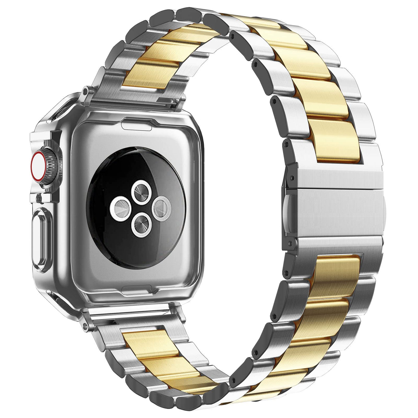 Material: 304 Stainless Steel Band And Electroplate Flexible Tpu Case Fit Watch Type: Fit Iwatch Se, Series 9, Series 8, Series 7, Series 6, Series 5, Series 4, Series 3, Series 2, Series 1, Sport And Edition As Well. Fit Wrist Size: Fit 5.3 -8.5 Inches (135Mm - 215Mm) Wrists. Extra Links: The Extra Links Are Available. If The Band Is Too Small For Your Wrist, Please Contact Our Seller Support To Get Extra Links. What You Will Get In The Box: 1 X Stainless Steel Band 1 X Tpu Watch Case 1 X Link Removal Tool Note: If You Encounter Any Problems Related To Our Strap, Please Let Us Know And We Will Do Our Best To Solve It For You.
