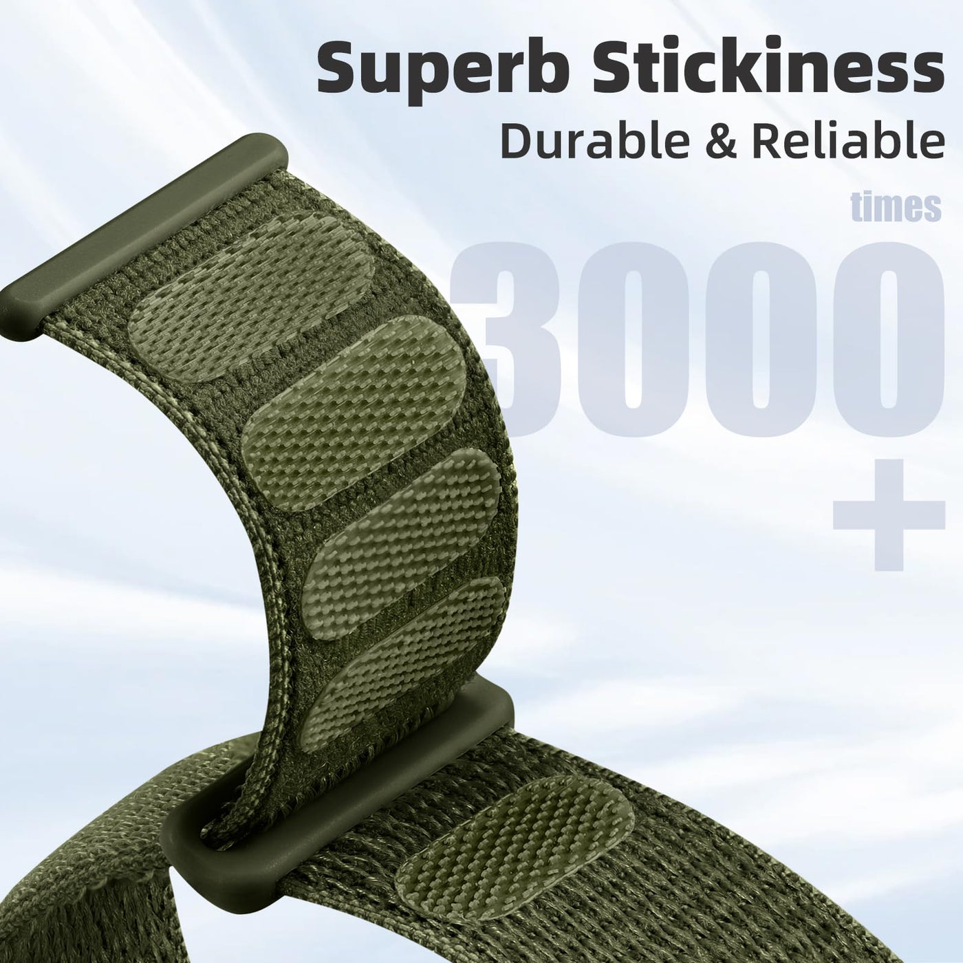 Q: What material is the DGege Sport Loop Band made from?A: The DGege Sport Loop Band is crafted from double-layer woven nylon material, making it lightweight, breathable, and skin-friendly. This ensures comfort while wearing, preventing skin irritation.