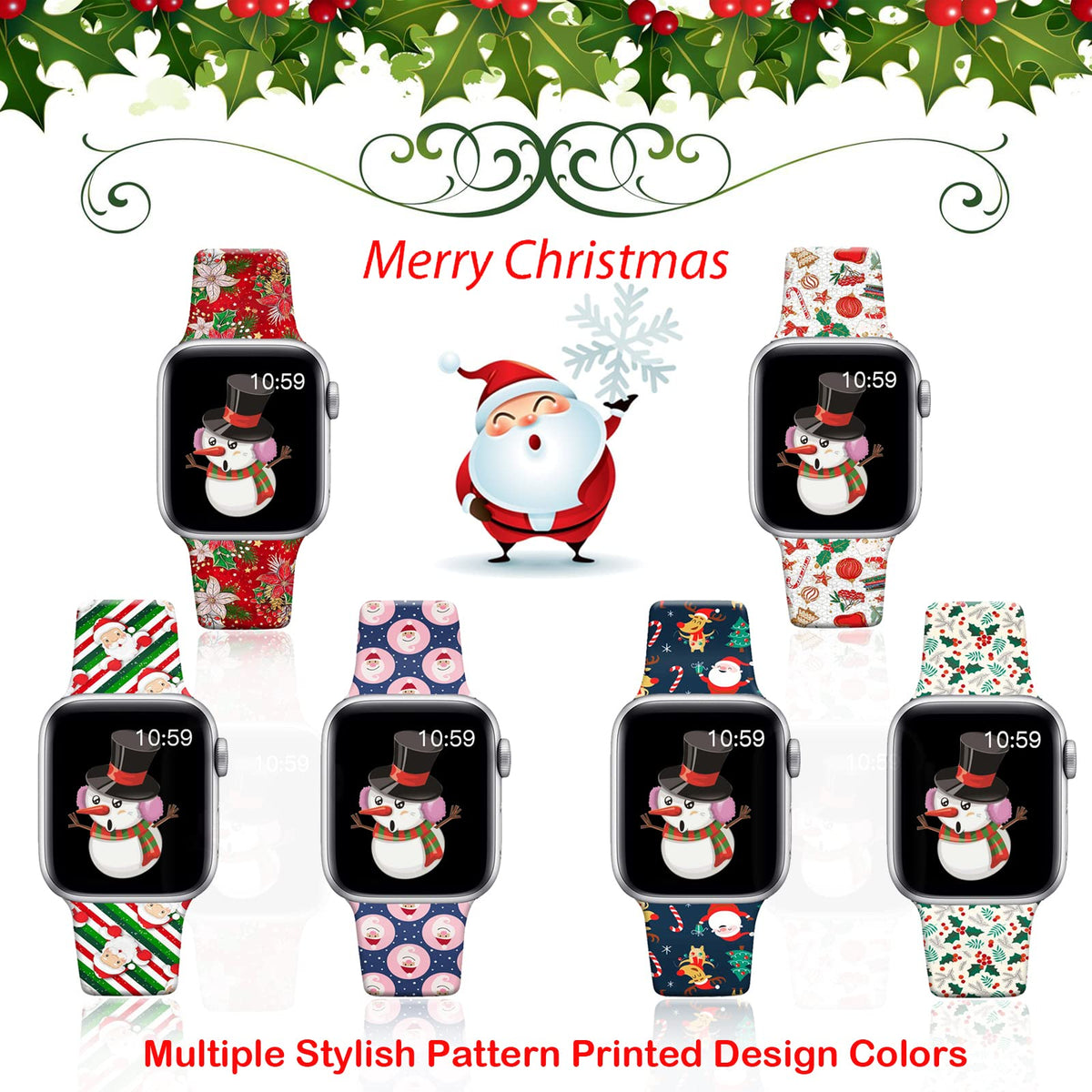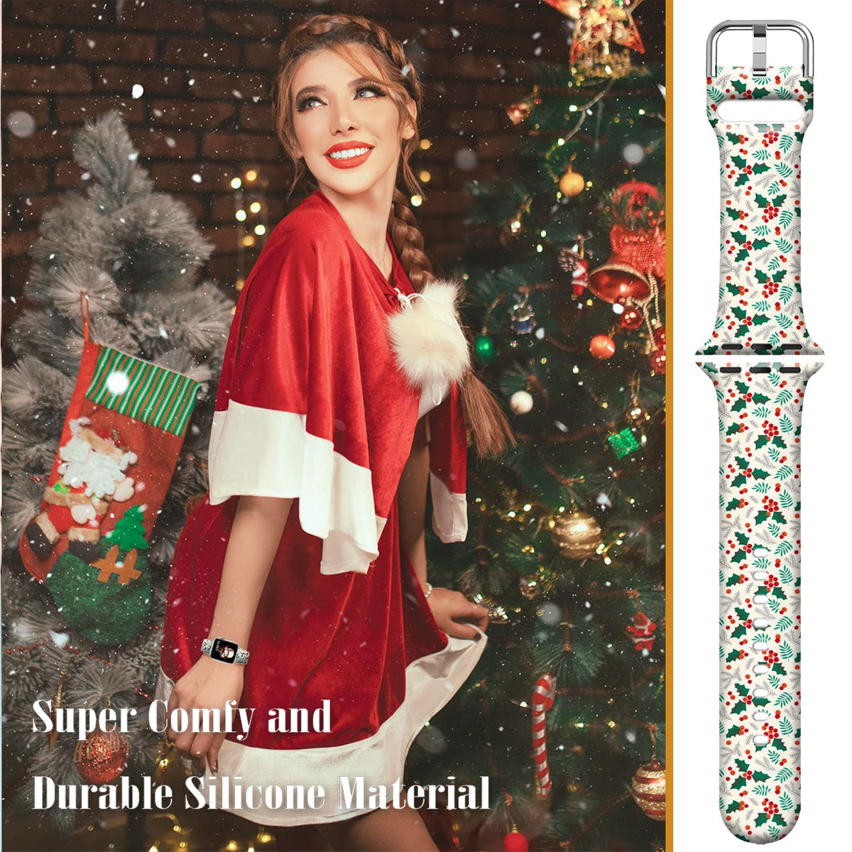 Brand: Doo Uc Compatible Models: This Christmas Floral Watch Bands Compatible With Iwatch 38Mm/40Mm/41Mm/42Mm/44Mm/45Mm/49Mm Rose Gold/ Black/ Silver Iwatch Series 8 Series 7 Series 6, Series 5, Series 4, Series 3, Series 2, Series 1, Compatible For Iwatch Se Gps Aluminum Case Cellular, Sport Version Model. About The Material: 1.Stylish Delicate And Elegant Looking. Soft Silicone Sport Strap With Smooth Finish For A Sporty Look. Comfortable And Durable. 2. Easy And Direct Installation And Removal. Quality Silicone Band, Keep Smooth And Light All Day. 3. Lightweight, Breathable, And Very Comfortable To Wear. Multiple Pattern To Match Your Daily Dress Up. To Be Stylish And Trendy Among The People, Choose The Pattern You Want. Warm Tips: No Matter Any Problem, Please Feel Free To Contact With Us, We Offer The Best Solution For Any Issue Of Product You Bought From Doo Uc And We'D Like To Make You Have A Perfect Purchase Experience In Our Shop!