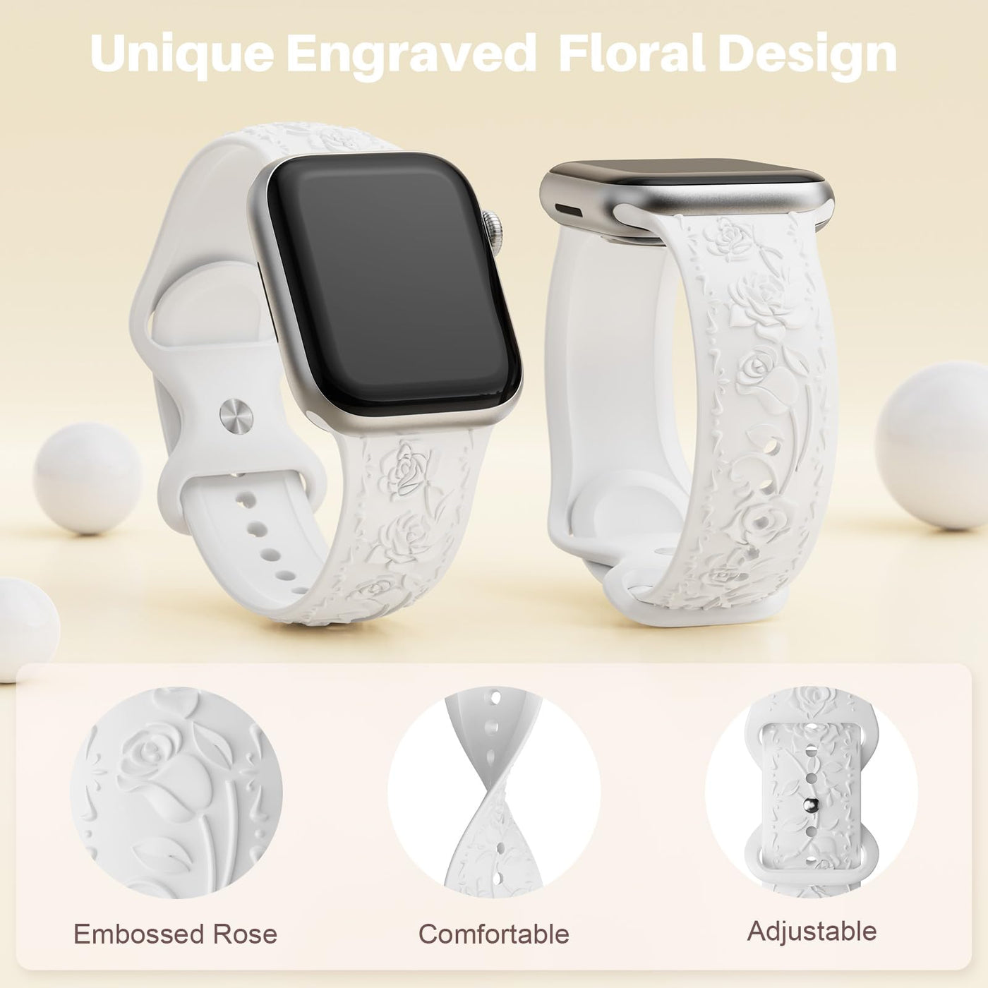 Floral Rose Engraved Bands Compatible With Apple Watch 38/40/41/42/44/45/46/49Mm(Watch Series 10/9/8/7/6/5/4/6/3/2/1/Se/Ultra) &Nbsp; *Newest Engraved Embossed Design *Rose Pattern Design *Multiple Color Combinations *Fashion &Amp; Beauty No-Worry Purchase---Any Problem About Our Rose Floral Iwatch Bands For Women, We Will Provide 1 Year Free Warranty For A Full Refund Or Replacement Without The Need To Return Anything. So Buy It With Confidence!