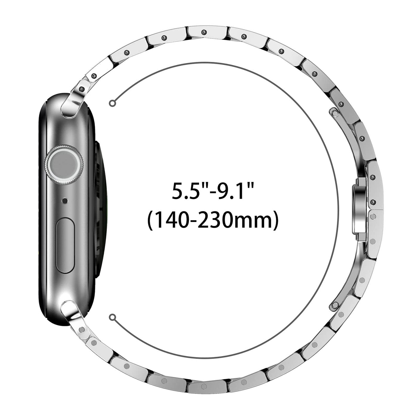 Apple Watch Link Bracelet] Update Version For The Apple Watch Series 7 And Series 8 Specifically, It Is Also Compatible With Apple Watch Ultra Folding Clasps: The Custom Butterfly Closure Folds Neatly Within The Link Bracelet The Hidden Deployment Buckle Opens With A Click Of The Two Side Buttons, Without Any Special Tools Adjustable Length: Twelve Links Can Be Removed Fits 55A-91A (140-230Mm) Wrists, You Can Keep The Original Length Or Adjust It By Adding And Taking Away Links To Suit You If You Need More Links, Pls Contact Us To Get Additional Link Bracelet Kit Easy Installation: There Are Installation Image And Video On Our Product Page And Instruction Is Included In The Package Package Included: 1 X Apple Watch Band, 1 X Removal Tool Kit, 1 X Instruction Manual And More Pins Compatible For Apple Watch Ultra 49Mm, Apple Watch Series 87654321 45Mm 44Mm 42Mm Our Quest For Excellence: Your Satisfaction Is Our Best Reward Enjoy 18 Months Complimentary Exchange Or Refund Without Return Please Contact Our Customer Service Team To Serve You