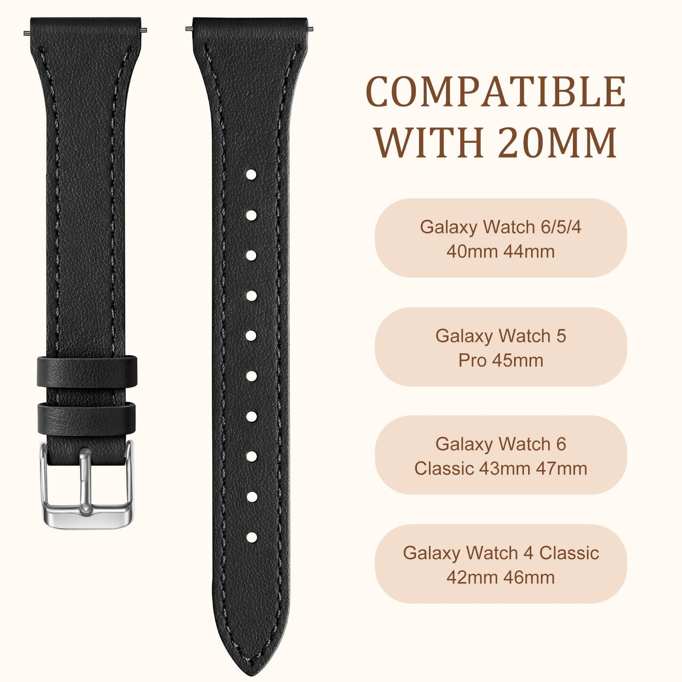 Geak For Samsung Galaxy Watch Bands For Women:Compatible With Samsung Galaxy Watch 7 6 5 4 40Mm 44Mmcompatible With Galaxy Watch 5 Pro 45Mmcompatible With Galaxy Watch 4 Classic 46Mm 42Mmcompatible With Galaxy Watch 6 Classic 47Mm 43Mmcompatible With Galaxy Active 2 40Mm 44Mmcompatible With Samsung Galaxy Watch 42Mmcompatible With Samsung Galaxy Watch 3 41Mm, Galaxy Watch Fe 40Mm, Gear Sport Gear S2 Classic, Moto 360 2Nd Gen 42Mmand Other Smartwatch With 20Mm Band Width With Lugswhy Choose Geak Leather Galaxy Watch Band For Women?Elevate Your Style With Genuine Luxury:The Galaxy Watch 6 Band Indulge In Timeless Elegance And Comfort With Our Premium Leather Watch Strap. Designed To Fit Seamlessly With Your Samsung Galaxy Watch, This Galaxy Watch 4 Band Offers The Perfect Blend Of Style And Durabilitycraftsmanship Meets Comfort:Made From Top-Quality Genuine Leather, Our Galaxy Watch 7 Band Is Meticulously Crafted To Ensure A Smooth, Supple Texture Against Your Skin. The Inner Lining Is Soft And Breathable, Ensuring All-Day Wearability Without Irritationsecure Fit And Effortless Swap:Featuring A Secure Buckle Closure, This Galaxy Watch 5 Band Provides A Snug Fit While Being Easy To Take On And Off. Its Quick-Release Pins Allow For Effortless Swapping, So You Can Change Your Look As Often As You Like Without Any Toolsamazing Choice For Holidays:Our Galaxy Watch Band Is The Pursuit Of Galaxy Watch Holder, And These Samsung Galaxy Watch 7 Band Just To Meet Their Needs. Will Be A Nice Choice During Festivalsvariety Colors:Enjoy Multi Colors For Galaxy Watch 6 Classic Bands Fashionable Wristband Option, Each Unique Color Gives You Different Wearing Experience. Matched With Your Mood And Your Different Styles Outfit In Daily Life