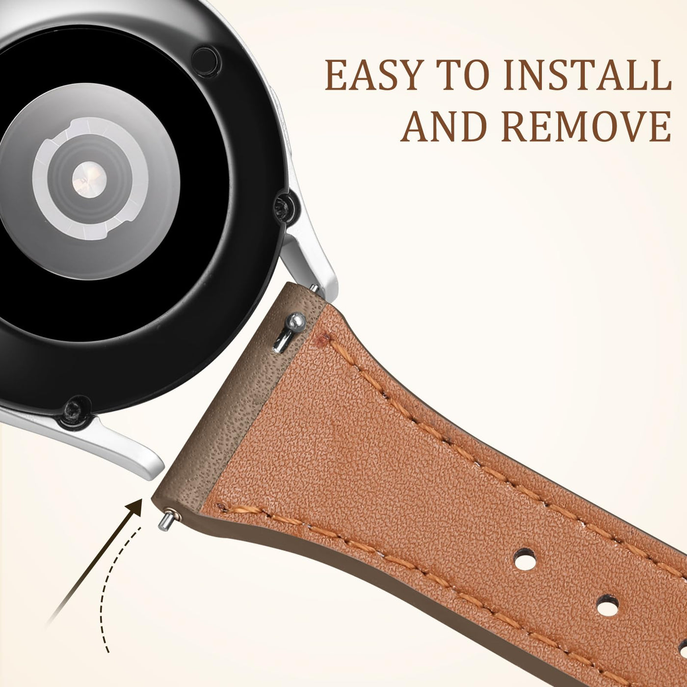 Geak For Samsung Galaxy Watch Bands For Women:Compatible With Samsung Galaxy Watch 7 6 5 4 40Mm 44Mmcompatible With Galaxy Watch 5 Pro 45Mmcompatible With Galaxy Watch 4 Classic 46Mm 42Mmcompatible With Galaxy Watch 6 Classic 47Mm 43Mmcompatible With Galaxy Active 2 40Mm 44Mmcompatible With Samsung Galaxy Watch 42Mmcompatible With Samsung Galaxy Watch 3 41Mm, Galaxy Watch Fe 40Mm, Gear Sport Gear S2 Classic, Moto 360 2Nd Gen 42Mmand Other Smartwatch With 20Mm Band Width With Lugswhy Choose Geak Leather Galaxy Watch Band For Women?Elevate Your Style With Genuine Luxury:The Galaxy Watch 6 Band Indulge In Timeless Elegance And Comfort With Our Premium Leather Watch Strap. Designed To Fit Seamlessly With Your Samsung Galaxy Watch, This Galaxy Watch 4 Band Offers The Perfect Blend Of Style And Durabilitycraftsmanship Meets Comfort:Made From Top-Quality Genuine Leather, Our Galaxy Watch 7 Band Is Meticulously Crafted To Ensure A Smooth, Supple Texture Against Your Skin. The Inner Lining Is Soft And Breathable, Ensuring All-Day Wearability Without Irritationsecure Fit And Effortless Swap:Featuring A Secure Buckle Closure, This Galaxy Watch 5 Band Provides A Snug Fit While Being Easy To Take On And Off. Its Quick-Release Pins Allow For Effortless Swapping, So You Can Change Your Look As Often As You Like Without Any Toolsamazing Choice For Holidays:Our Galaxy Watch Band Is The Pursuit Of Galaxy Watch Holder, And These Samsung Galaxy Watch 7 Band Just To Meet Their Needs. Will Be A Nice Choice During Festivalsvariety Colors:Enjoy Multi Colors For Galaxy Watch 6 Classic Bands Fashionable Wristband Option, Each Unique Color Gives You Different Wearing Experience. Matched With Your Mood And Your Different Styles Outfit In Daily Life