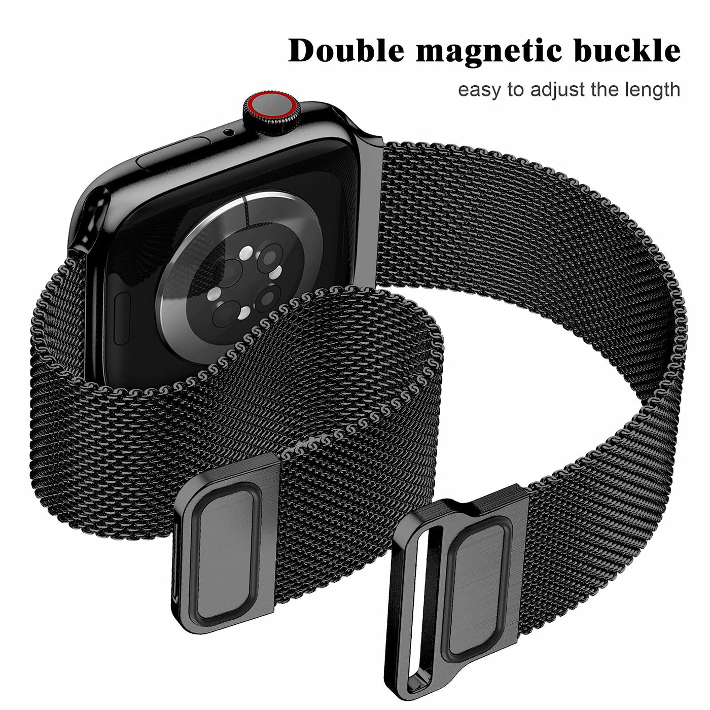 - Geoumy Metal Replacement Band Compatible With Apple Watch Series 8/7/6/5/4/3/2/1, Se. - Adjustable Magnet Clasp And Security Buckle Design Of The Wristband,Just Easily Stick And Lock Your Iwatch, The Smooth Stainless Steel Mesh Wraps Fluidly Around Your Wrist,Ensuring A Perfect Fit. - Waterproof And Durable Stainless Steel, Comfortable And Cool.Also It Is Solid, Durable, Flexible, Breathable, Non-Allergic, Corrosion And Will Never Get Rusty. -Stylish Design And Color Personalize Your Compatible With Iwatch,Match Your Clothes And Outfit, Change You Mood Everyday. Fits For Woman, Man, Boys And Girls, Amazing Gift For Family And Friends. -The Drop And Scratch-Resistant Apple Watch Band With Case Are Designed To Add An Extra Layer Of Security To Your Expensive Watch. The Premium Tpu Case Provides 360 Degrees Of Total Security For Your Iwatch. It Is Not Afraid Of Bumps, Scratches, Daily Wear, Accidental Drops And Bumps Even In Harsh Environments.