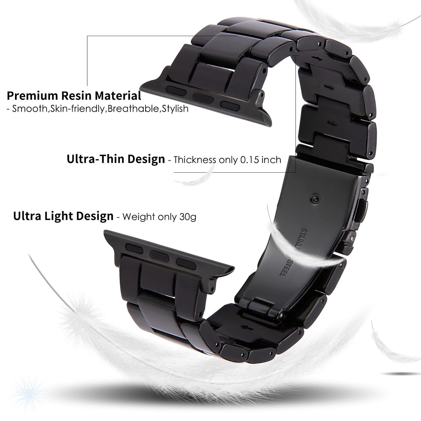 Hopo Compatible With Apple Watch Band,Thin Light Resin Strap Bracelet With Stainless Steel Buckle Replacement For Iwatch Series