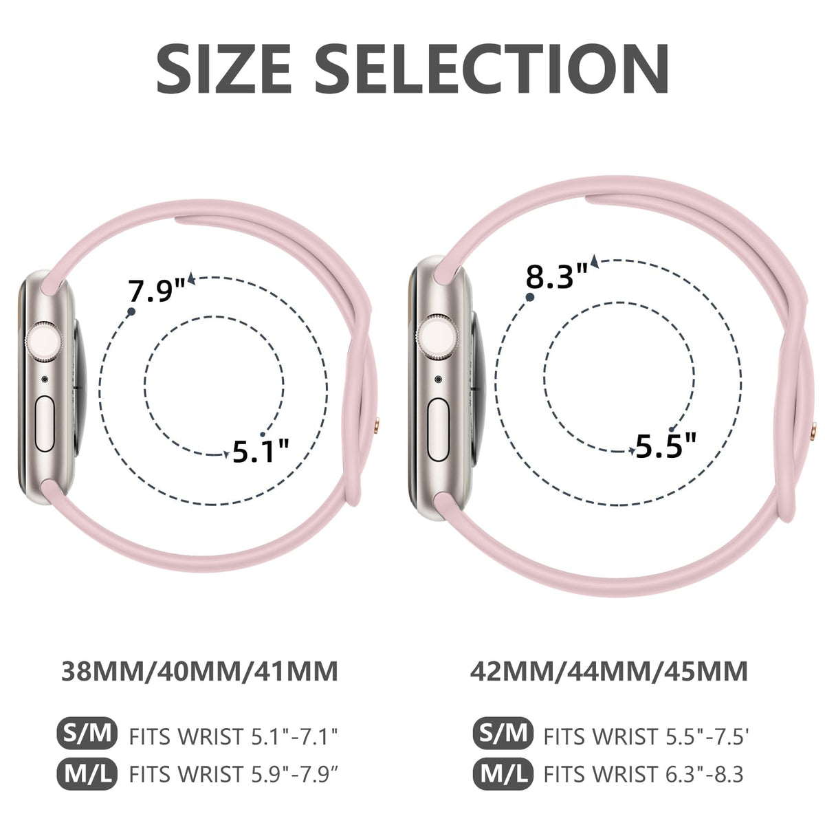 Q: How do I choose the right size for the IMIVIO Sport Band?A: The IMIVIO Sport Band comes in different sizes suited for various wrist sizes. For example, the S/M size fits wrists from 5.1" to 7.1" and the M/L size fits wrists from 5.9" to 7.9". Please measure your wrist before purchasing to ensure a proper fit.