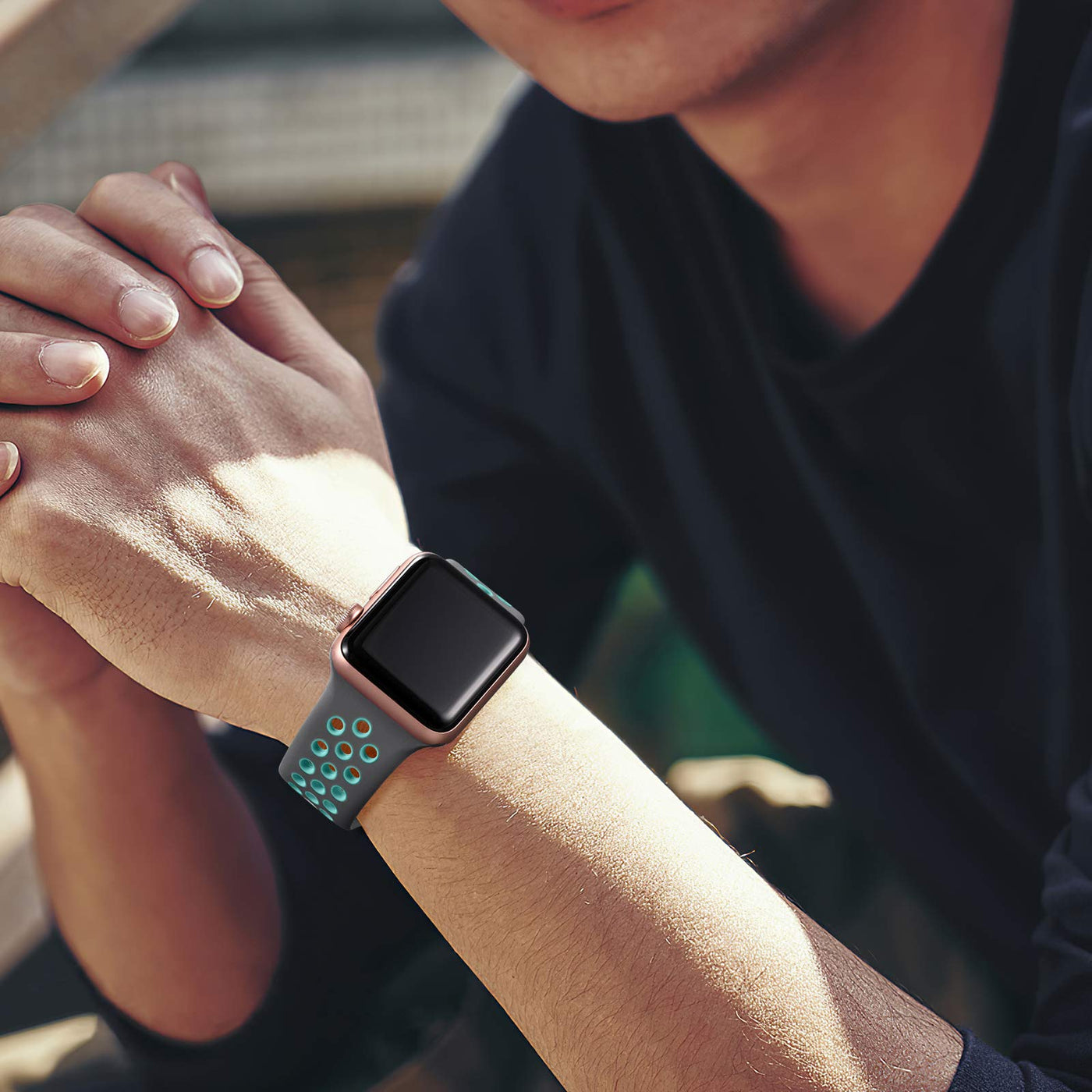 Q: What Apple Watch models are compatible with the Lerobo Sport Bands?A: The Lerobo Sport Bands are compatible with various Apple Watch models including Series 8, Series 7, Series 6, Series 5, Series 4, Series 3, Series 2, and Series 1. They fit sizes 38mm, 40mm, 41mm, 42mm, 44mm, and 45mm.