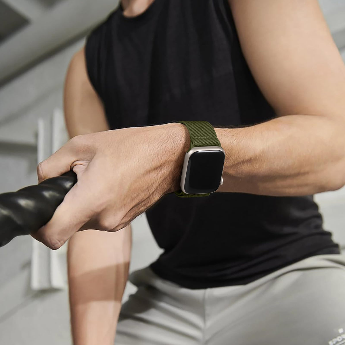 Q: What colors are available for the Maledan Stretchy Nylon Band?A: The Maledan Stretchy Nylon Band is available in a variety of colors, including the Green Army option. This allows you to personalize your Apple Watch to match your mood and outfit for any occasion.