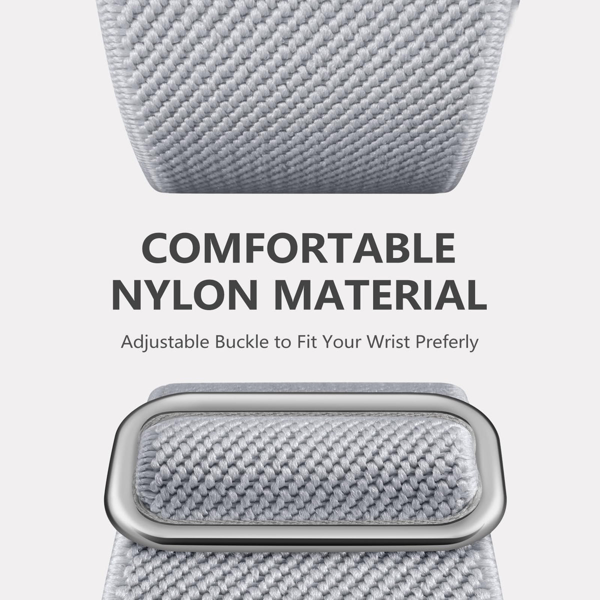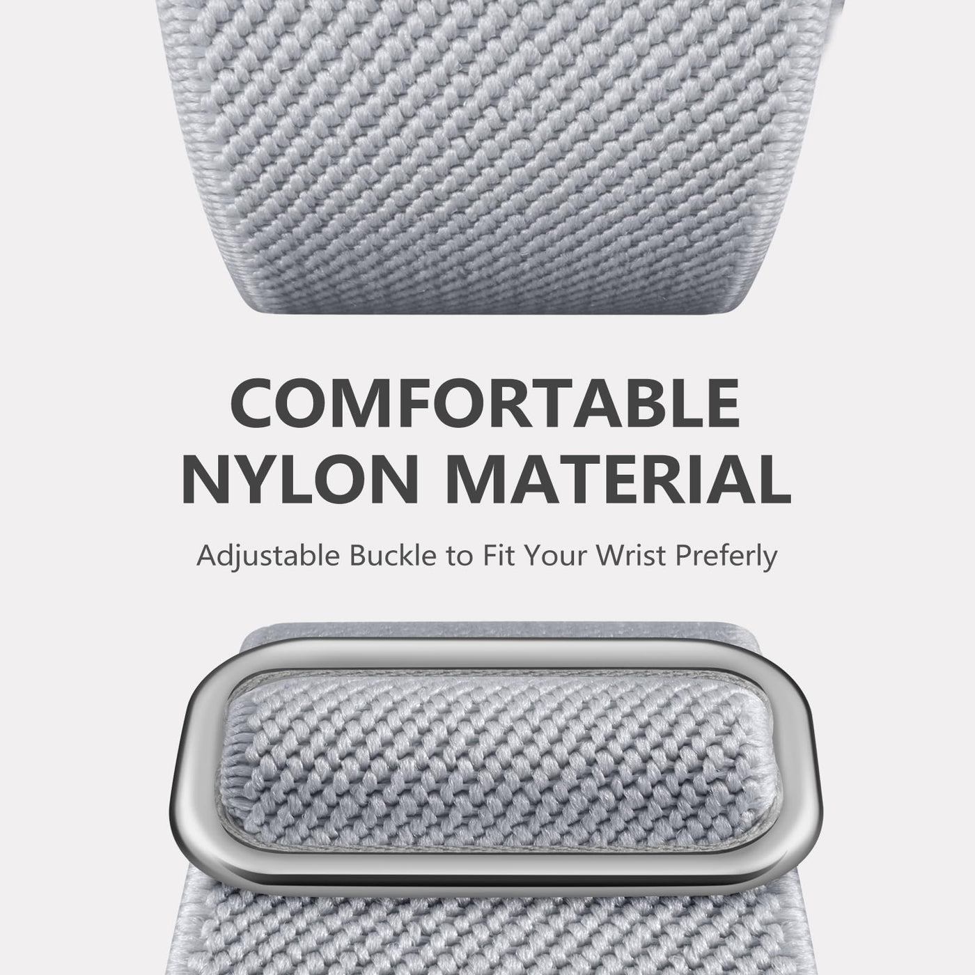 Q: What materials are used in the Maledan Elastic Nylon Sport Band?A: The Maledan Elastic Nylon Sport Band is made from soft, breathable nylon material, designed to be skin-friendly and lightweight for all-day comfort while wearing your Apple Watch.