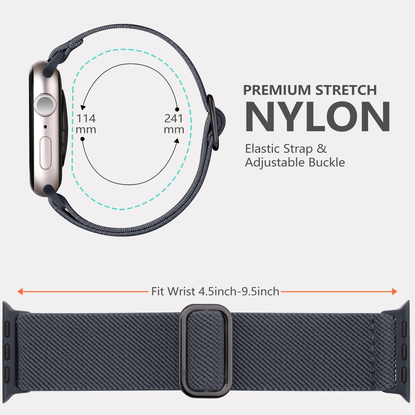 Maledan Stretchy Solo Loop Bands Compatible With Apple Watch Band 38Mm 40Mm 41Mm 42Mm 44Mm 45Mm 46Mm 49Mm For Iwatch Ultra/Ultra 2 Series 10/9/8/7/6/5/4/3/2/1/Se Women Mencompatible Model:46Mm 42Mm Bands Compatible With New Apple Watch Series 10(2024)49Mm 45Mm 41Mm Bands Compatible With New Apple Watch Series 9/Ultra 2(2023)49Mm 45Mm 41Mm Bands Compatible With Apple Watch Series 8/Ultra(2022)45Mm 41Mm Bands Compatible With Apple Watch Series 7(2021)44Mm 40Mm Bands Compatible With Apple Watch 6/Se(2020)44Mm 40Mm Bands Compatible With Apple Watch Series 5(2019)44Mm 40Mm Bands Compatible With Apple Watch Series 4(2018)42Mm 38Mm Bands Compatible With Apple Watch Series 3(2017)/Series 2(2016)/Series 1(2015)Why Choose Maledan Stylish Elastic Iwatch Bands For Women?1.Skin-Friendly & Lightweight Materials: Maledan Elastic Solo Loop For Apple Watch Band 44Mm 45Mm 49Mm Are Made Of Naturally Cooling Nylon Material, Soft And Comfortable To Wear, Skin-Friendly To Your Wrist. Breathable, Lightweight, Durable And Easy To Maintain.2.Elastic & Stretched: These Stylish Nylon Strap For Apple Watch Series 9 Band Sport Bands Are Designed With Stainless Steel Slider Buckle, Allowing You To Easily Adjust The Size Of The Loop As You Wish.3.Easy To Install & Remove: The Replacement Iphone Watch Bands For Women Compatible With Apple Watch Bands 40Mm Women Men Have Smartwatch Lugs At Both Ends, Which Lock Onto Your Iwatch Interface Precisely And Securely, Preventing The Watch From Falling Off And Loosening, One Step To Install And One Button To Remove4.Multiple Colors: Enjoy Various Colors For Apple Watch Bands For Women Men In One Pack, Each Color Gives You A Different Wearing Experience. Personalize Your Watch To Your Mood And Your Outfit In Everyday Life.Life-Time Friendly Customer Support For Any Quality Issues
