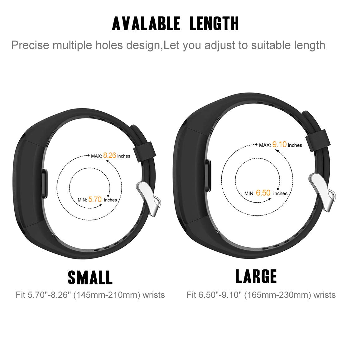 Q: What wrist sizes does the Meifox replacement band fit?A: The Meifox replacement band comes in two sizes: the Small fits wrists measuring 5.70" to 7.5" (145mm-190mm), while the Large fits wrists measuring 6.5" to 8.9" (165mm-225mm).