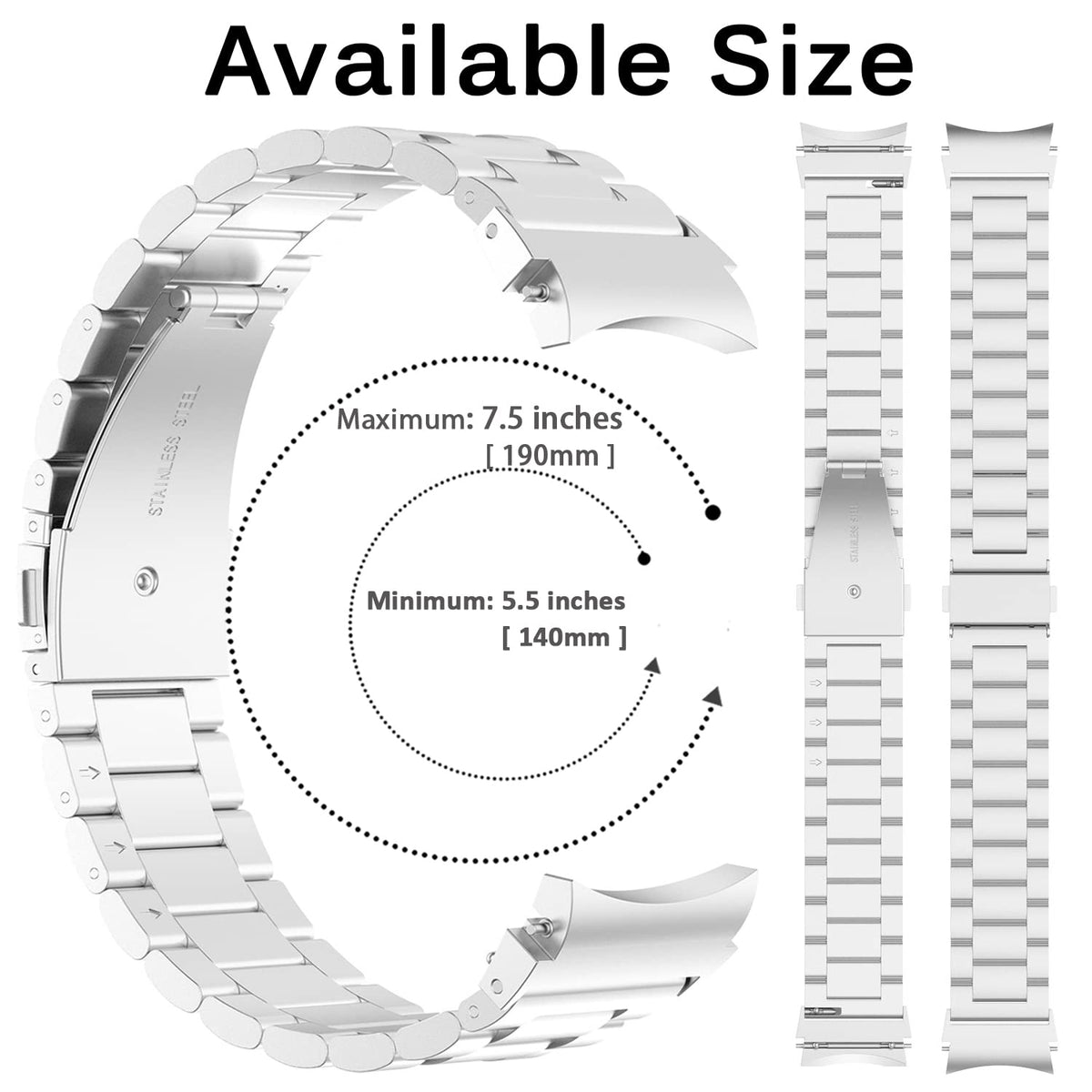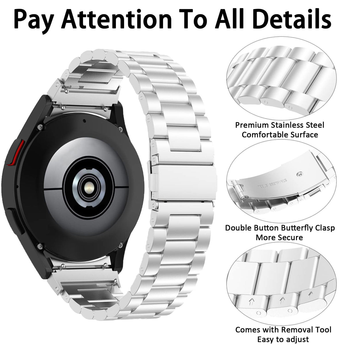 Compatibilityerfectly Compatible With Samsung Galaxy Watch 5 40Mm 44Mm(2022), Samsung Galaxy Watch 5 Pro 45Mm(2022), Samsung Galaxy Watch 4 40Mm 44Mm, Galaxy Watch 4 Classic 42Mm 46Mm(2021), Designed For Women And Men, Without Smart Watchanote: Not Compatible With 2019 Samsung Galaxy Watch 46Mm] O Gaps Designo Gaps Design Gives Your Samsung Galaxy Watch 4 An Elegant Look And Helps You Lock Your Watch Securely For A Better Wearing Experience Whats More, The Watch Can Be Easily Installed And Removed By Simply Moving The Button On The End Of The Band, No Tools Are Needed Remium Stainless Steelthe Samsung Galaxy Watch 4 Classic No Gaps Band Made Of Finely Processed High-Grade Stainless Steel Metal With Wear-Resistant, Durable And Comfortable To Touch Which Fits The Skin Without Itching Easy Adjustmentsuitable For Wrists From 55-75 Inches (140Mm-190Mm) Comes With Removal Tool Which Makes You Very Easy To Adjust The Band Length Suit For You Besides, With Classic Two-Push-Button Stainless Steel Buckle, Very Secure And Easy To Use In Your Daily Life Erfect Giftthe Bracelet Is High Quality, Fashionable And Skin-Friendly, Giving A Nice Look On Any Occasion, No Matter Sports, Casual, Daily Or Business Furthermore, It Is Suitable As A Special Gift For Your Families And Friends On Birthday, Christmas, Thanksgiving And Other Festivals
