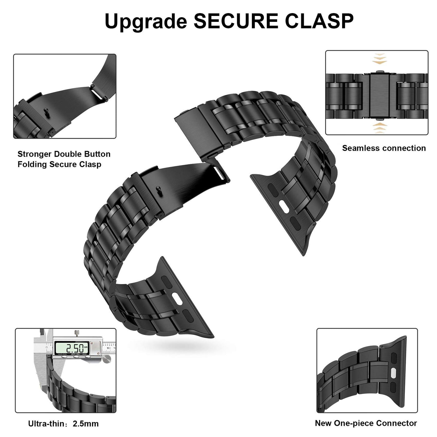 Compatibility: Compatible With Apple Watch 44 Mm (Series Se/6/5/4), 42 Mm (Series 3/2/1) Of All Versions. Not Compatible With Series 10 42Mm (Package Include: A Soft Tpu Protective Case Compatible With Apple Watch Se/Series 6/5/4/3/2/1 Band). Super Easy To Install And Romove, Easy To Adjust The Size, Suitable For Wrists 6.3''-8.3'' (160 Mm-210 Mm) | Latest Design: The Design Inspiration Comes From A World Famous Brand, Gradual Slender; Ultra-Thin Style; Exquisite Appearance Are A Popular And Fashionable Trend All Over The World. 2.5 Mm Thickness And Net Weight Is 0.18 Lb, So When You Wear It, You Will Feel Lighter And Not Bulky | Craft Material: All Made Of Top-Grade Solid Stainless Steel 316L, With High-Tech Metal Wire Drawing And Smooth Surface Technology, Profession Vacuum Plating Technology, Design And Aesthetics Taking Every Detail Into Account. They Are Beautiful And Elegant In Color With Noble, Luxurious, Corrosion-Resistant, Durable, High In Hardness, Wear-Resistant, And Comfortable To Touch | Safety And Reliability: With Upgraded And Stronger Durable Double Buckle Structure, This Precise Double-Lock Folding Buckle Can Reliably Lock Your Wristband. You Do Not Feel Worried About The Damage Or Crash Of The Adapter Because Our Upgraded Adapter And Band Are Integrated | Package Include: 1 Band Compatible With Apple Watch; 1 Tpu Cover; 1 Adjustment Tool