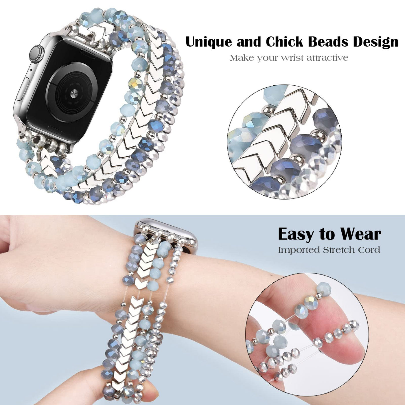 Are You Looking For A Beautiful And Stylish Replacement For Apple Standard Strap? I Believe This Mofree Beadeds Braclect Compatible With Apple Watch Band Women Can Meet Your Expectations. Feature: Band Metarial: This Fancy Bracelet For Apple Watch Band Made Of High-Quality Natural Beadeds, Imported High-Strength Elastic Rope, Shinty Colorful Crystals. Fit For Females Wrist Size: Large Size:6''-6.9'',Small Size: 5.3''-6.2''Compatible With Iwatch Series: Series 10/9/8/7/6/5/4/3/2/1/Se/ Fits Sizes Of Apple Watches: 38Mm 40Mm 41Mm 45Mm 44Mm 42Mm Suitable For Wearing Occasions: Party, Birthday, Wedding, Office, Leisure Travel, Seder, School Etc. Perfect Holiday Gift: This Exquisite And Unique Braclect For Apple Watch Band Will Be Your Great Gift Choice, Suitable For The Thanksgiving And Christmas, Wedding Anniversary, Mothers Day, Graduation Etc. This Band Compatible Wtih Apple Watch Is Not Only A Perfect Replacement For Bangle And Durable And Will Not Fade Or Break Warm Reminder: 1: Iwatch Not Included 2: Please Carefully Confirm Whether It Matches The Size Of Your Wrist Before Purchase 3.If You Have Any Questions, Please Feel Free To Contact Us, We Will Solve It For You As Soon As Possible.You Will Get Quality Products And After-Sales Service
