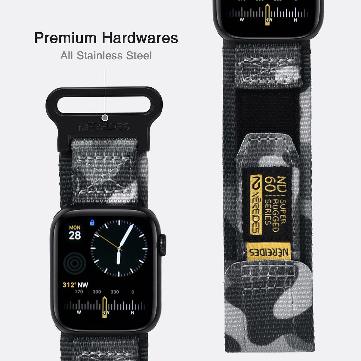 Nereides Compatible With Apple Watch Band Ultra 1/2, Nylon Sports Strap With Woven Design For 49Mm (L, Grey Camo)