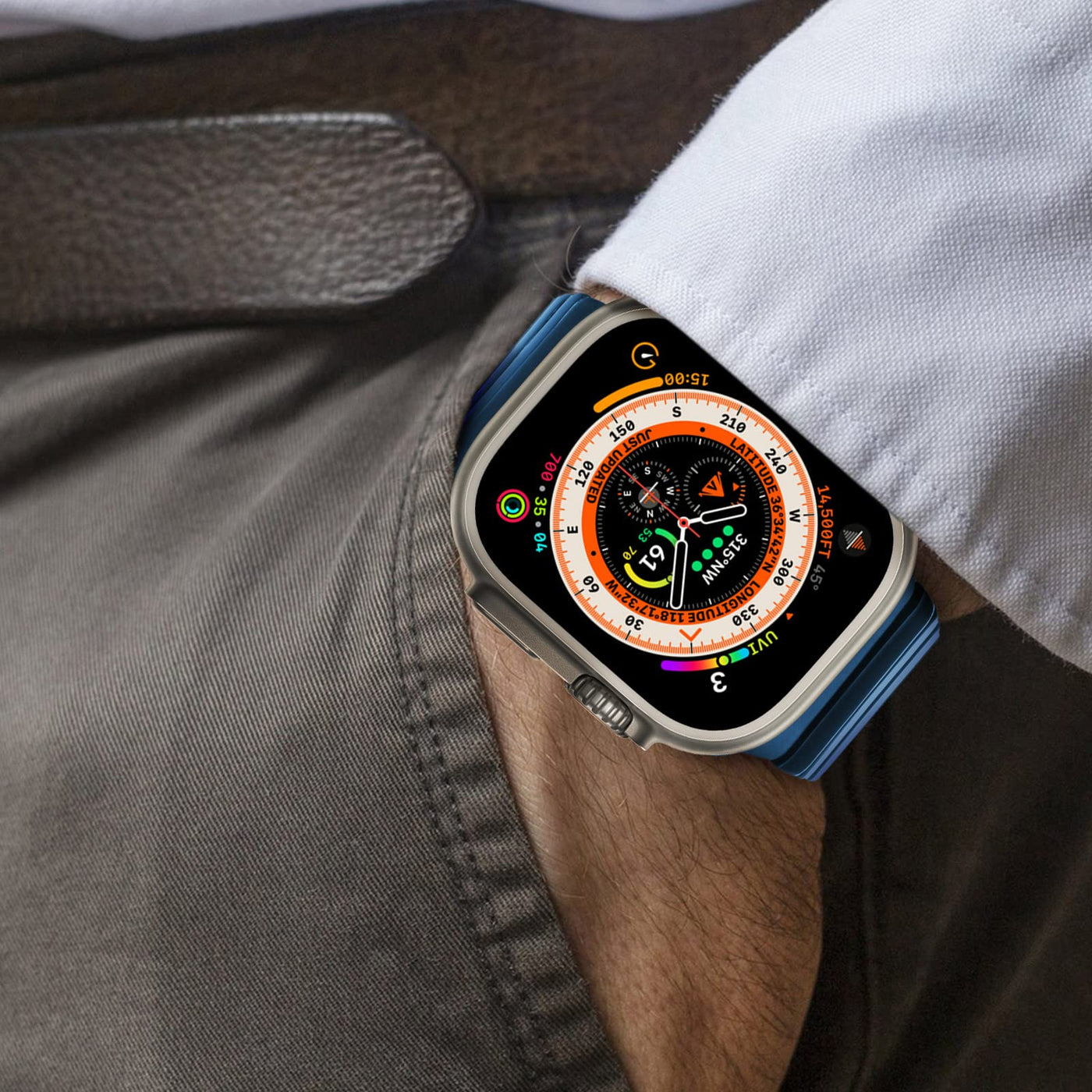 Q: Does this band have a secure closure mechanism?A: Yes, the NewWays Metal Band is equipped with a custom double button folding clasp that locks firmly in place, ensuring your Apple Watch stays secure and looks sleek.