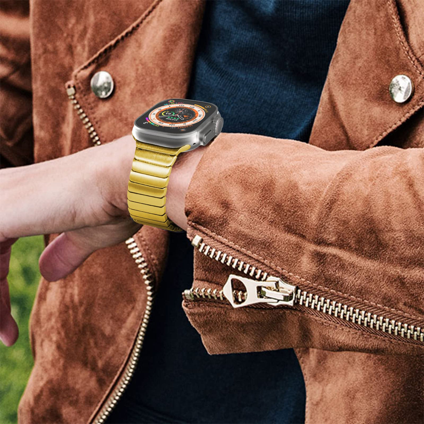 Newways Metal Band Compatible With Apple Watch Ultra 2 Band 49Mm Series 9, Stainless Steel Link Bands, Gold