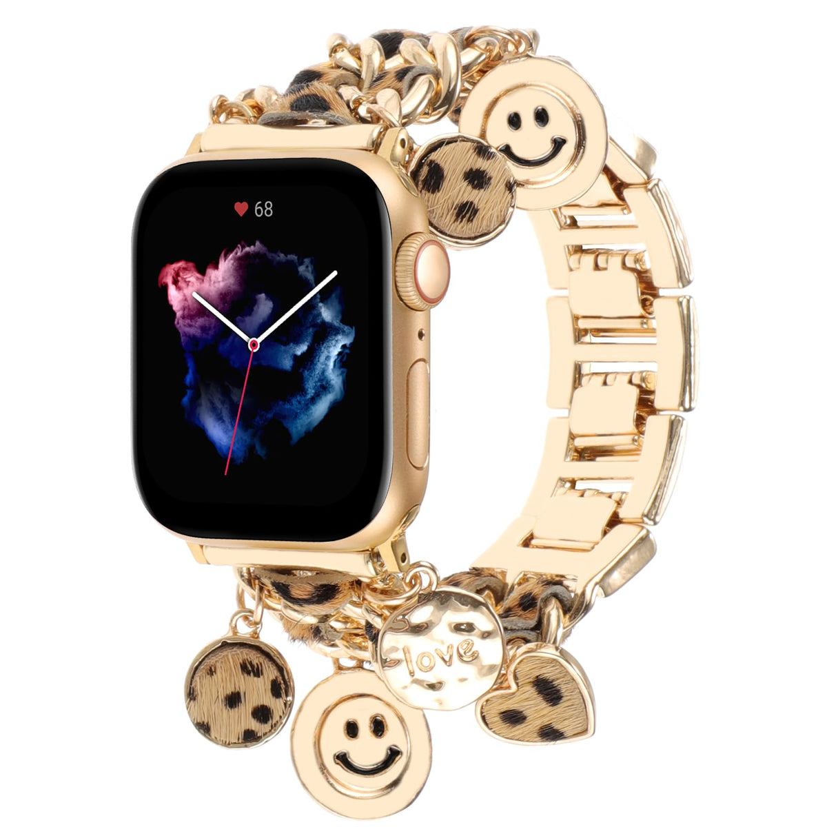 Realsign Stylish Metal Wristband Compatible With Apple Watch Band 38Mm 40Mm 41Mm,Cuban Chain Bracelet Leopard Love Smile Face Pe