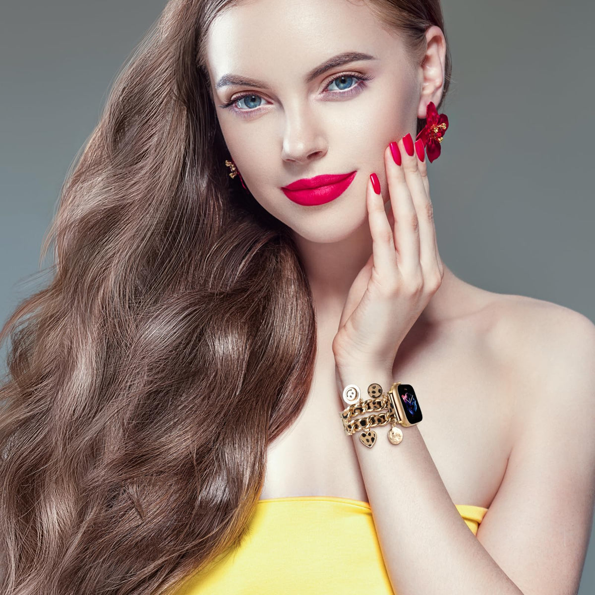 Specifications: Leopard Band For Apple Watch Band Material: Metal,Leather With Fur Product Style:Stylish,Cute Color:Dark Brown Gold Watch Band Quantities Of Pendants On The Gold Chain: 2 Love Shape With Leopard Print Fur Pendants 2 Circular With Leopard Print Fur Pendants 2 Circular With 'Love' Engraved Pendants 2 Circular With Smiley Face Pendants Watch Band Net Weight:About 61.83G(2.18Oz) Watch Band Size:About 165Mm(Length)X20Mm(Width) (6.5 *0.79 ) Package Size: About 228Mm(Length)X70Mm(Width) (8.98 *2.76 ) Compatible Models: Please Choose Size ''38/40/41Mm'' For The Following Series: Compatible With Apple Watch Series 1/2/3 38Mm(2015/2016/2017) Compatible With Apple Watch Series 4/5/6 40Mm(2018/2019/2020) Compatible With Apple Watch Series 7/8/9 41Mm(2021/2022/2023) Compatible With Apple Watch Se 40Mm (2020/2022) Please Choose Size ''42/44/45Mm'' For The Following Series: Compatible With Apple Watch Series 1/2/3 42Mm(2015/2016/2017) Compatible With Apple Watch Series 4/5/6 44Mm(2018/2019/2020) Compatible With Apple Watch Series 7/8/9 45Mm(2021/2022/2023) Compatible With Apple Watch Ultra/Ultra 2 49Mm (2022/2023) Compatible With Apple Watch Se 44Mm (2020/2022) (Please Check The Size On The Back Of Your Watch To Choose The Right Size.) What'S In The Box? 1 X Metal Watch Band(Watch Not Included) About Realsign: 1.We Sell Various Types Of Watch Bands,Watch Band Charms Accessories.We Sell Watch Straps Made Of Various Materials,Items With Original And Stylish Styles. 2.All Our Products Use Premium Materials,Have Good Quality And Are Well Packaged,We Provide Good Pre-Sales And After-Sales Services. 3.If You Have Any Questions About Our Products,Please Contact Us By Email And We Will Provide You With A Solution As Soon As Possible.