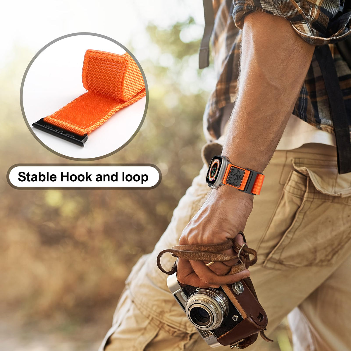 Compatible Models: Our Nylon Sport Bands Tough Guy Style Strap Compatible With Apple Watch Band 46Mm Men, Apple Watch Band 44Mm Men, For Apple Watch Band 45Mm Men, For Apple Watch Ultra 2 Band 49Mm ,For Apple Watch Ultra Band 49Mm Men, For Apple Watch Band 42Mm Men, For Apple Watch Series 8 45Mm For Men, For Apple Watch Series 7 45Mm For Men, For Apple Watch Series 6 44Mm Men, For Apple Watch Series 5 44Mm Men, For Apple Watch Series 4 44Mm Men, For Apple Watch Se 44Mm Men, For Apple Watch Series 3 42Mm Men, For Apple Watch Series 2 42Mm Men, For Apple Watch Series 1 42Mm Men, For Apple Watch Ultra 49Mm Men, For Iwatch Ultra 49Mm Men, For Iwatch Series 8 45Mm Men, For Iwatch Series 7 45Mm Men, For Iwatch Series 6 44Mm Men, For Iwatch Series 5 44Mm Men, For Iwatch Series 4 44Mm Men, For Iwatch Se 44Mm Men, For Iwatch Series 3 42Mm Men, For Iwatch Series 2 42Mm Men, For Iwatch Series 1 42Mm Men, For Iwatch Ultra Bands 49Mm Men,For Iwatch Bands 45Mm Men, For Iwatch Bands 44Mm Men,For Iwatch Bands 42Mm Men.Rugged & Durable: The Rugged Strap Is Made Of Comfortable & Skin-Friendly Nylon Material, Comfortable & Breathable, Durable & Washable.Easy Installation & Buckle Fasteners Design:The Nylon Woven Band Comes With Metal Connectors At Both Ends, Which Locks Onto Your Apple Watch Interface Precisely And Securely, One Hand Assembly & One Button Removal. Durable Loop And Buckle Fastener Design With Superior Adhesion, Which Let Your Watch Firmly Fix On Your Wrist, Not Easy To Fall Off.Designed For Apple Watch Wristbands For Men A Ideal Gift For Your Family, Friends.