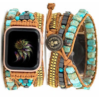 Compatibility: For Apple Watch Ultra Se & Series 10/9/8/7/6 / 5 / 4 / 3 / 2 / 1/Ultra Watch Band Material: Natural Stones, Crystal, Howlite, Alloy Beads, Wax Rope Leather. Connector Material: 316L Stainless Steel Package Included: 1 X Watch Band (No Watch Included)