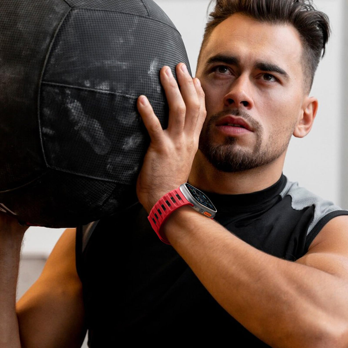 Q: What makes the Sport Band different from other Apple Watch bands?A: The Sport Band features a 26mm ultra-wide design for added style and comfort, a dual-color aesthetic, and a perforated design for breathability, making it ideal for sports enthusiasts and active lifestyles.