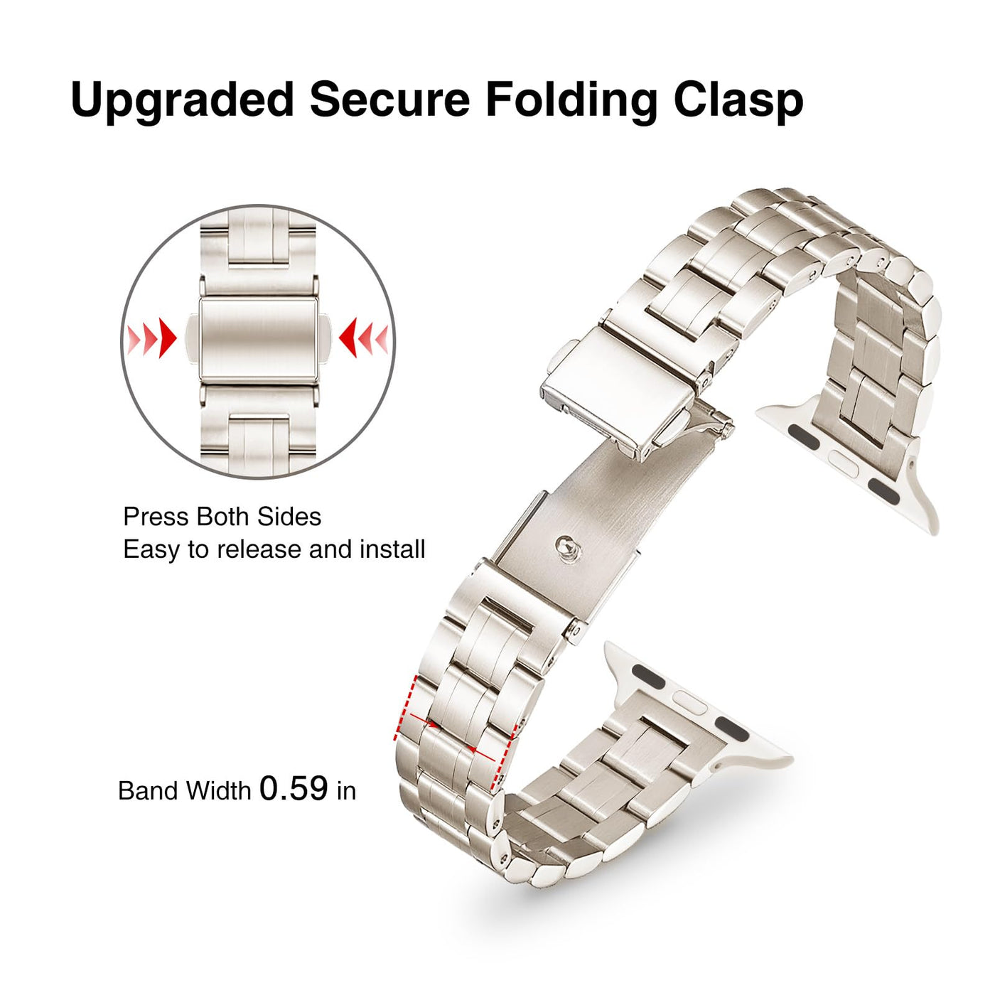 Good Materialthe Smartwatch Wristbands Provide A Smooth Touch. With Exquisite, Noble, Elegant And Sturdy Characteristics. The Matte Material Has A Brushed Effect.Simple Adjustmentthe Operation Is Simple And No Complicated Tools Are Needed. Use A Simple Link Remover To Easily Adjust The Band.Fit Wrist Sizesuitable For Wrists From 5.8 Inches To 8.1 Inches (140Mm-208Mm).No Worry About Losing The Watch In Any Daily Activities. Suitable For All Occasions, Party, Wedding, Holiday, Work, Etc. It Also Can Be A Gift For Mother'S Day, Valentine'S Day, Christmas, Birthday And So On. It Will Be A Stylish Everyday Strap.Fit Smartwatch Type: Compatible With Iwatch Series 10 46 Mm, Series 9 8 7 45 Mm, Series Se 6 5 4 44M M, Series 3 2 1 42 Mm, Series Ultra 2 1 49 Mm . How To Remove The Links Of The Band?Please Be Sure To Follow The Steps Below To Avoid Damaging The Strap! Please Make Sure To Insert The Screw From The Arrowed Side.1. Place The Strap On The Tool, Aligning The Screw Tip Of The Tool With The Pin Hole On The Side Of The Strap.2. Rotate The Screw Of The Tool Gently Until The Pin Of The Strap Is Pushed Out. Then Loosen The Screw Of The Tool In The Opposite Direction To Release The Band.3. Remove The Pin.4. Repeat The Previous Steps.5. Arrange The Watch Chains On The Watch Band And Table Top, Pierce The Pin Gently Into The Hole Of The Links, And Make Sure The Correct End (The Round End) Is Inserted Into The Link Holes.6. Insert Most Of The Pin To Ensure That The Link Does Not Fall Off.7. Place The End Of The Pin On A Hard Surface Or Tool. Then Press Vertically.8.Good Job!Note: 1. Due To The Shooting Angle, The Color Of The Watch Band May Be Slightly Different From The Color Of The Picture. 2. Please Pay Attention To The Size Of The Watch Band When Purchasing.