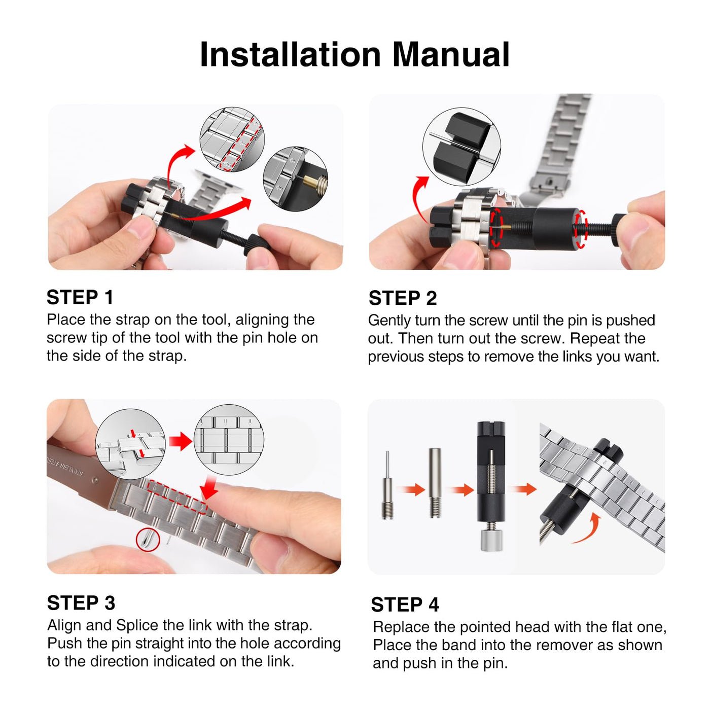 Q: How can I adjust the size of the STIROLL Thin Replacement Band?A: Adjusting the size of the STIROLL Thin Replacement Band is simple. Use the included link removal tool to remove or add links as needed. Follow the instructions carefully to avoid damaging the band.