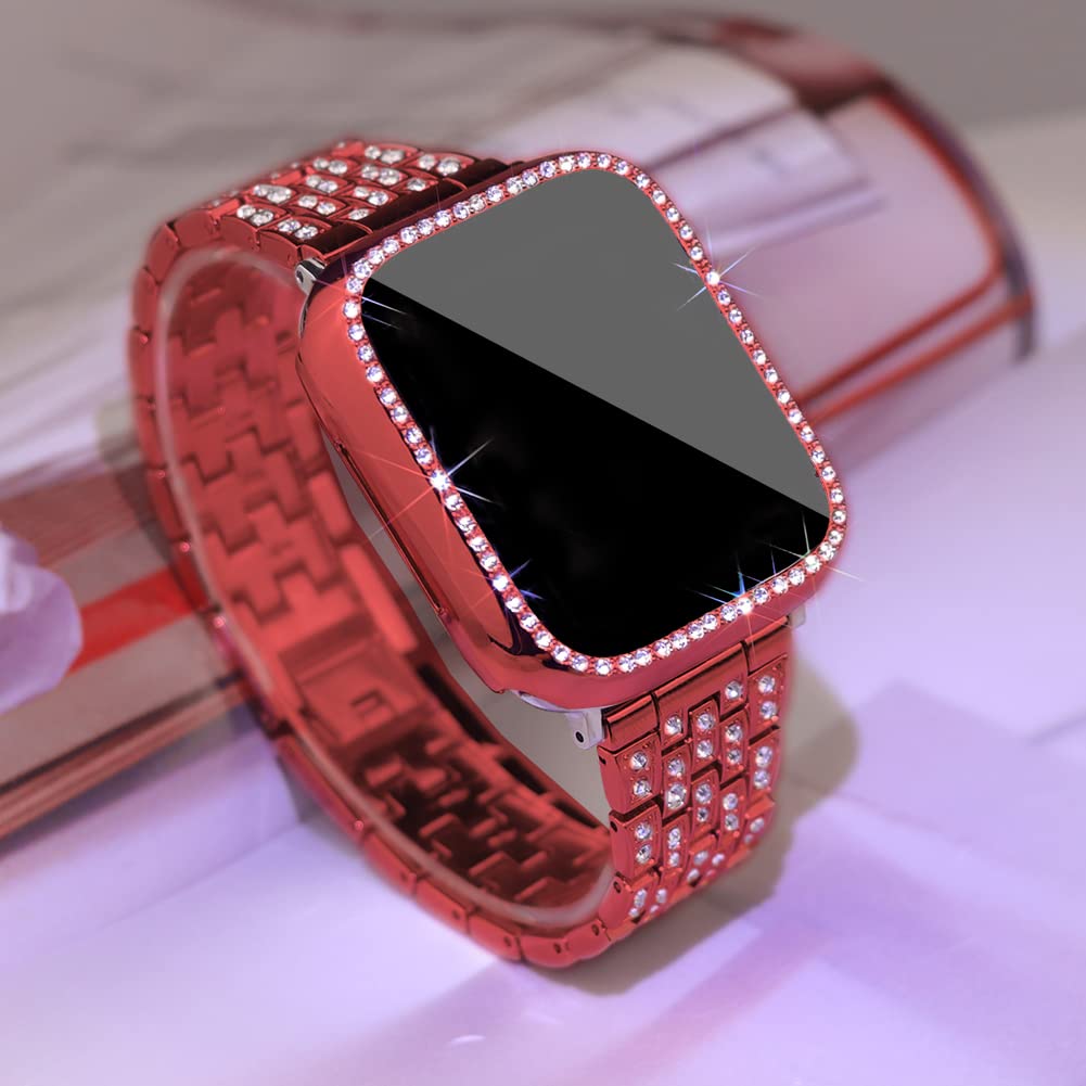 Supoix Compatible With Apple Watch Band 41Mm + Case, Women Jewelry Bling Diamond Rhinestone Replacement Metal Strap &Soft Tpu Pr