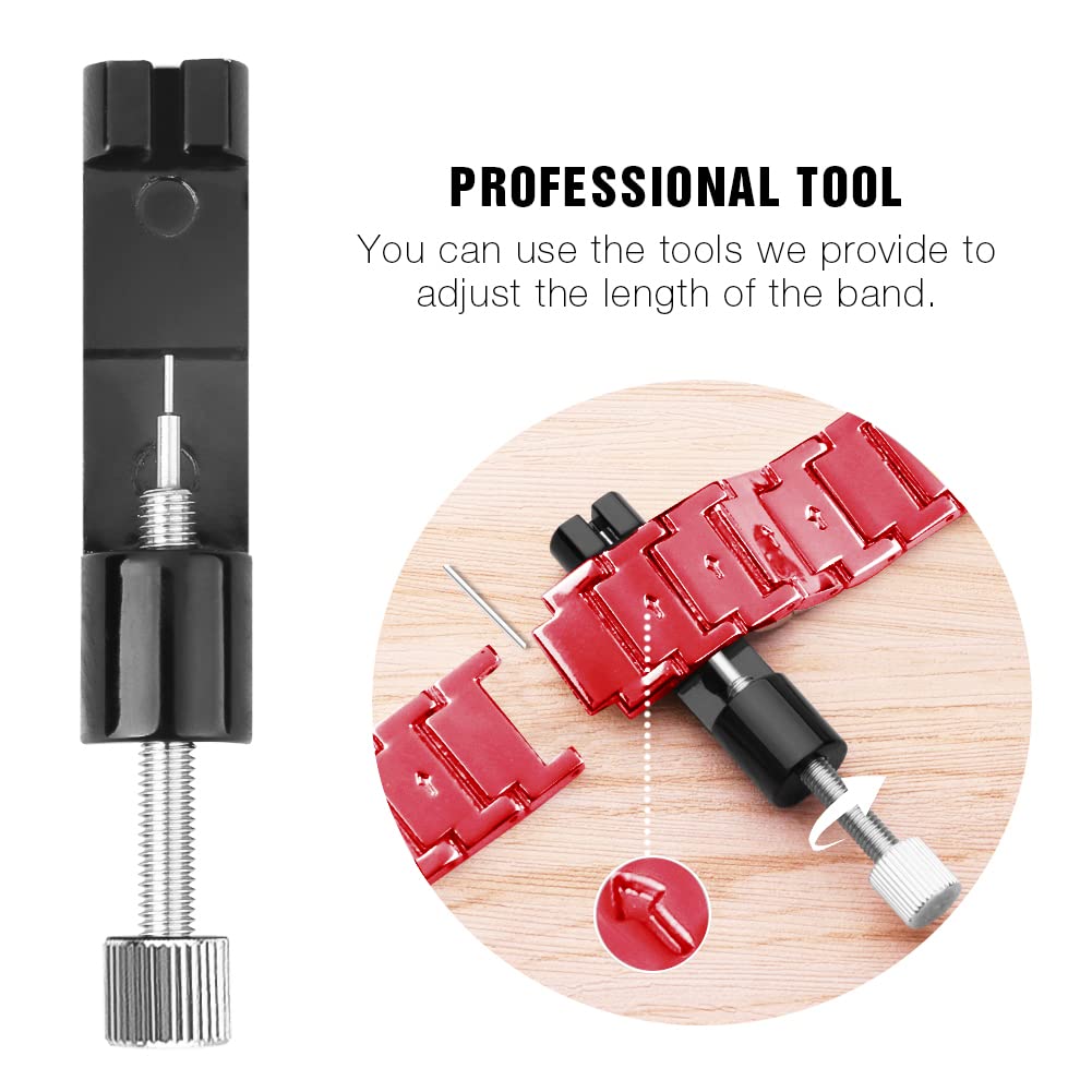 Q: How do I adjust the length of the SUPOIX watch band?A: The SUPOIX watch band comes with a resizing tool that allows you to easily remove extra links to achieve a perfect fit for wrist sizes between 5.5 to 8.1 inches.