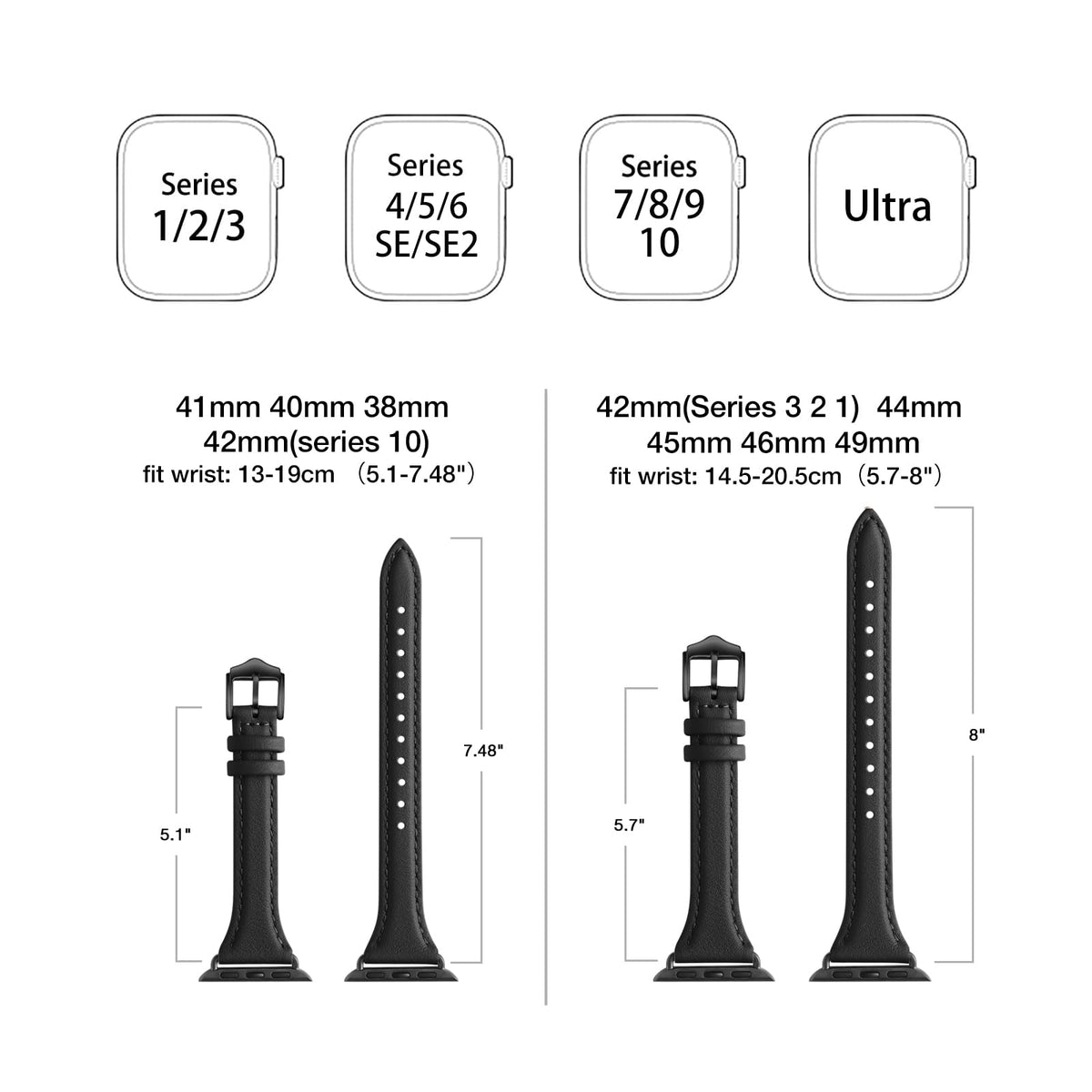 Wfeagl Compatible With Leather Apple Watch Band 41Mm 40Mm 38Mm 42Mm(Series 10) Women, Top Grain Leather Strap Slim & Thin Replac