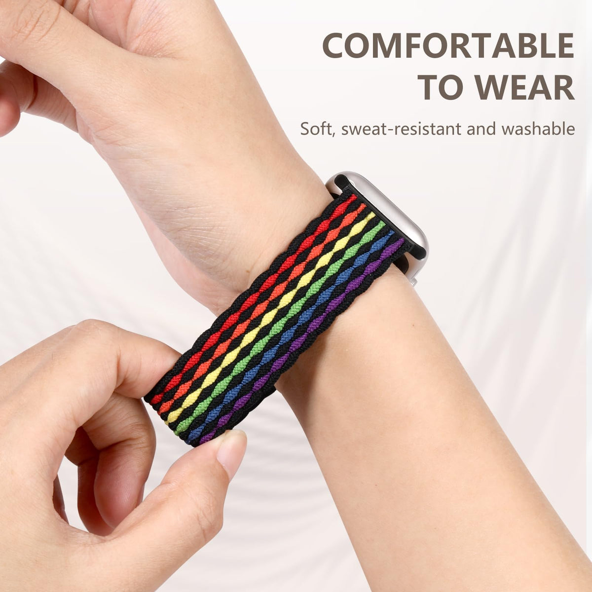 Q: What colors are available for the Zedoli Apple Watch band?A: The Zedoli braided solo loop band comes in a variety of fashionable colors, including the Rainbow Black option. This allows you to easily match your band with your daily outfits and personal style.